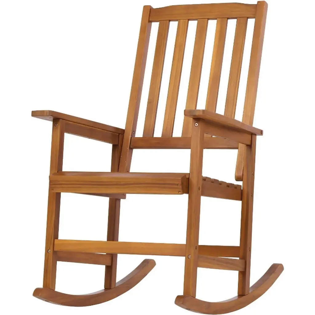 The Atalaya Outdoor Rocking Chair from Alder & Ore is the classic, quintessential porch rocker, featuring with a vibrant woodgrain surface and a frame that looks backward for inspiration. Designed with clean, straight lines of Shaker-inspired design that connect to the crafting traditions of colonial New England and New York, this chair is made from sustainable acacia wood in a natural finish, offering a vintage look that can withstand outdoor environments. Reinforced with galvanized steel hardware for durability, it’s perfect for relaxed outdoor living. It can coordinate with transitional and rustic modern spaces, combining strength and comfort for years of relaxed rocking.