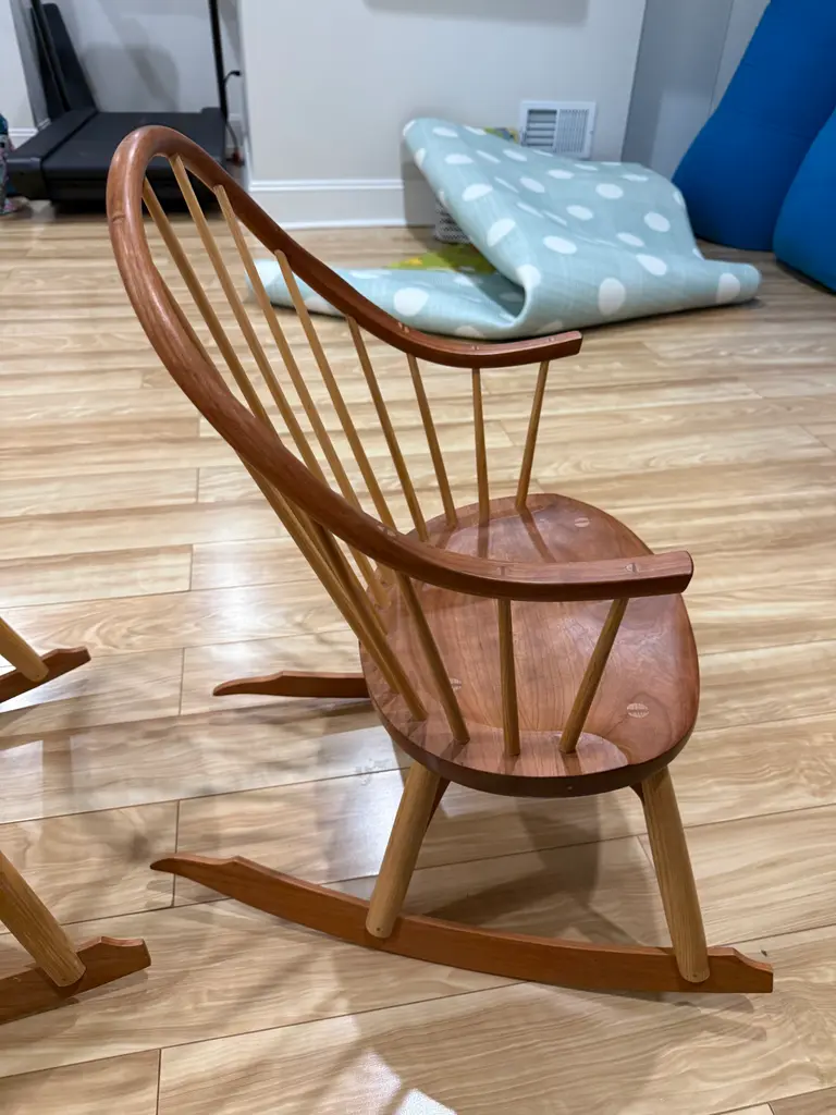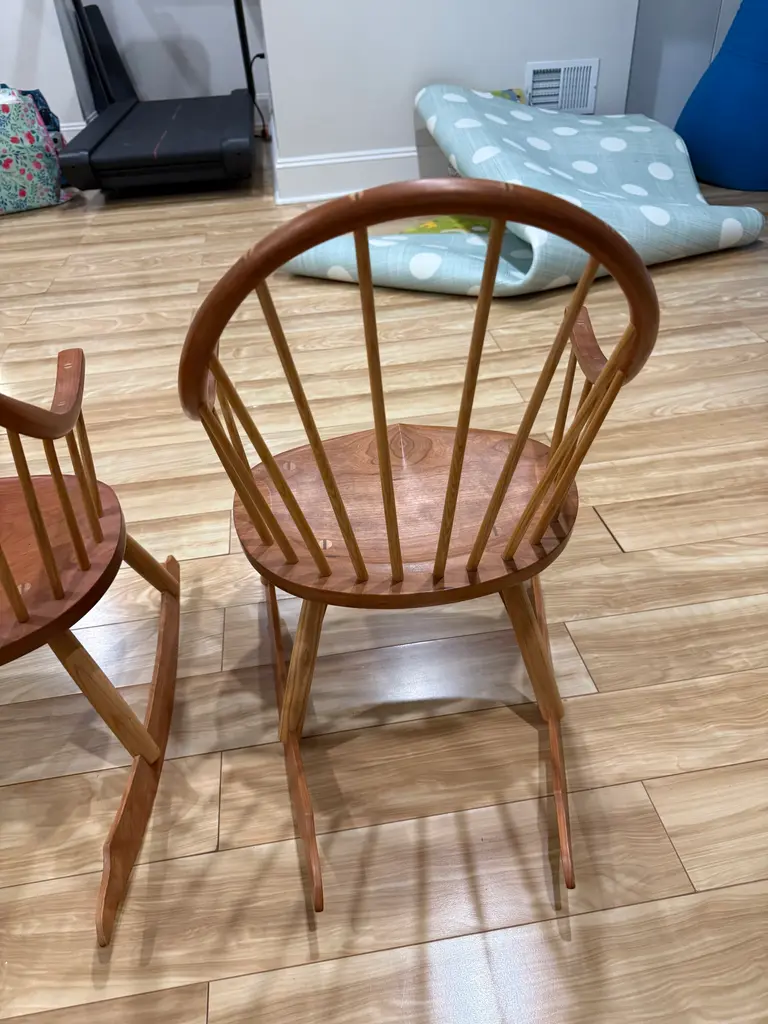 My children have outgrown these beautiful Thos Moser rocking chairs - one of a kind and in mint condition (only stored a few stuffed animals!). Not marked.