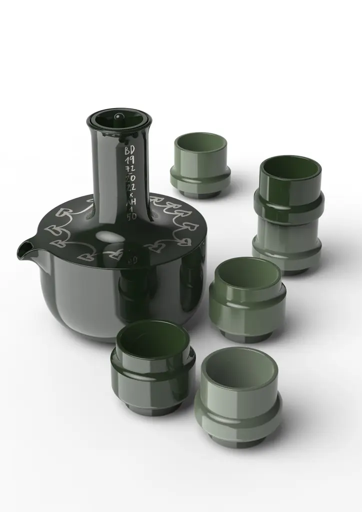 Beige Doobide Crockery set by Alfredo HäberliLimited Edition of 10 sets per color.Materials: Dyed porcelain, painted by hand in platinum.Dimensions: Teapot: D 16 x W 16 x H 18 cm. Teacup: D 6,5 x W 6,5 x H 5,6 cm.Available in Beige, Green, Flesh, Grey and Blue.Doobide Collection is inspired in emirates’ society coffee tradition and has been designed to celebrate BD 50th anniversary. The collection consitist of a limited edition of 50 numbered crockery sets. It is available in five different colour ranges and 5 graphics: green, beige, flesh, grey and blue. Each range contains 10 crockery sets. It is composed by a teapot and 6 teacups (3 different models). The pieces are made out of dyed porcelain and painted by hand in platinium.Alfredo Häberli was born in Buenos Aires, Argentina, in 1964. He moved to Switzerland in 1977 and graduated 1991 with distinction in Industrial Design at the Höhere Schule für Gestaltung in Zurich. Today, he is an internationally established designer based in Zurich and is working for some of the leading companies of the international design industry such as Alias, BD Barcelona, BMW, Camper, FSB, Georg Jensen, Iittala, Kvadrat, Luceplan, Moroso, Schiffini and Vitra. He manages to unite tradition with innovation, joy and energy in his designs and his work is strongly influenced by his early childhood in Argentina as well as his curiousness and studies in everyday life. The results are works with a strong expression and emotionality.