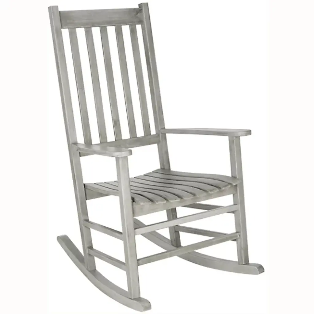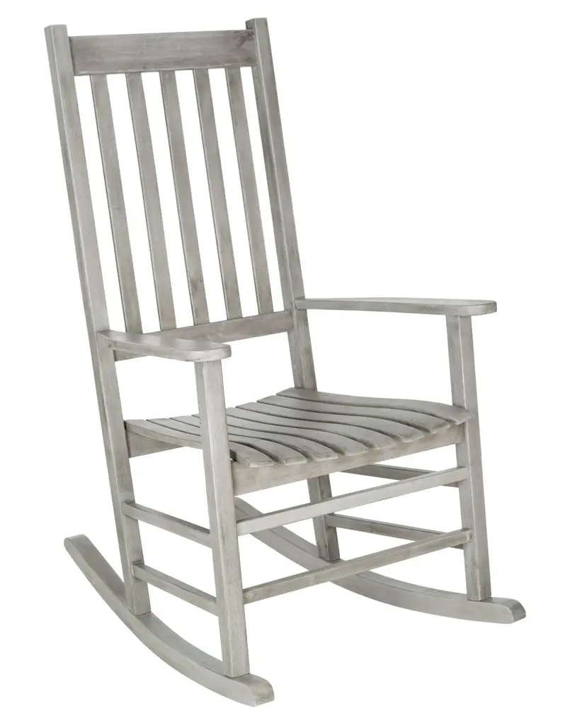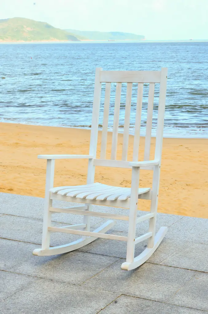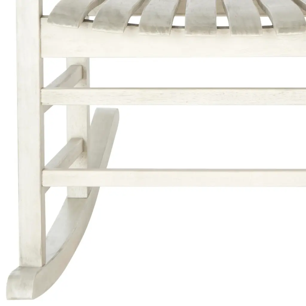 A country porch classic, the char Shasta rocking chair is a perennial favorite in homes across America. Meticulously crafted of sustainable acacia wood with a whitewash finish, this piece is designed for comfort, long wear and ease of care. Store outdoor furniture indoors or cover well when not in use. Remove wooden furniture from standing water. Dust regularly with small brush or vacuum. Spills should be taken care of immediately before they harden or stain with a slightly dampened sponge. Do not use bleach solutions. Some assembly required.
