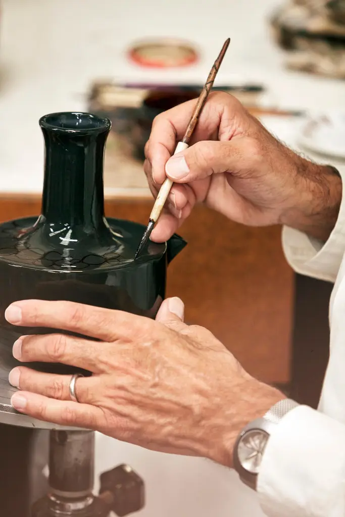 Blue Doobide Crockery set by Alfredo HäberliLimited Edition of 10 sets per color.Materials: Dyed porcelain, painted by hand in platinum.Dimensions: Teapot: D 16 x W 16 x H 18 cm. Teacup: D 6,5 x W 6,5 x H 5,6 cm.Available in Beige, Green, Flesh, Grey and Blue.Doobide Collection is inspired in emirates’ society coffee tradition and has been designed to celebrate BD 50th anniversary. The collection consitist of a limited edition of 50 numbered crockery sets. It is available in five different colour ranges and 5 graphics: green, beige, flesh, grey and blue. Each range contains 10 crockery sets. It is composed by a teapot and 6 teacups (3 different models). The pieces are made out of dyed porcelain and painted by hand in platinium.Alfredo Häberli was born in Buenos Aires, Argentina, in 1964. He moved to Switzerland in 1977 and graduated 1991 with distinction in Industrial Design at the Höhere Schule für Gestaltung in Zurich. Today, he is an internationally established designer based in Zurich and is working for some of the leading companies of the international design industry such as Alias, BD Barcelona, BMW, Camper, FSB, Georg Jensen, Iittala, Kvadrat, Luceplan, Moroso, Schiffini and Vitra. He manages to unite tradition with innovation, joy and energy in his designs and his work is strongly influenced by his early childhood in Argentina as well as his curiousness and studies in everyday life. The results are works with a strong expression and emotionality.