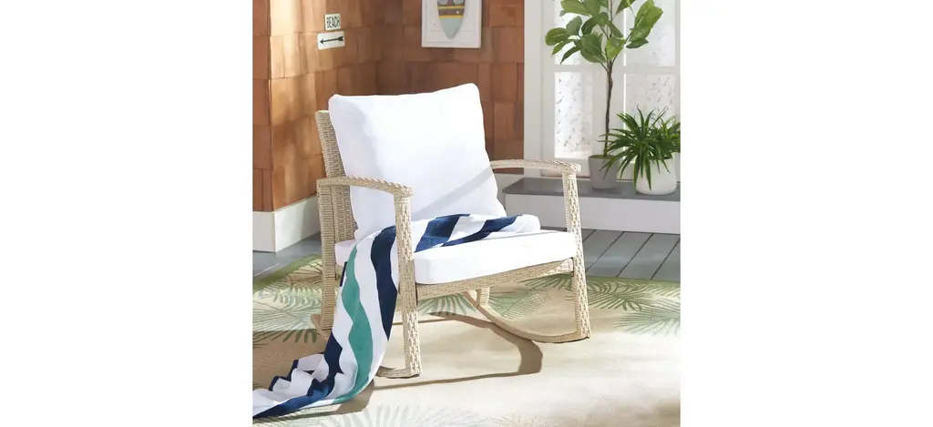 Classic meets contemporary in the sophisticated Bradbury rocking chair. Bradbury's open frame in PE rattan emanates a soothing breezy look, while plush weather-strong cushions make for luxury that lasts.