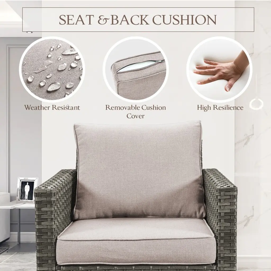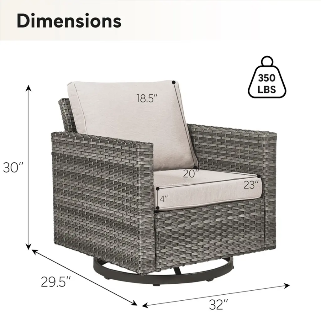Transform your outdoor space with the Buenhomino 4-Piece Patio Swivel Chair Set! These stylish wicker chairs feature 360¡ã swivel and smooth rocking motion for ultimate relaxation. Built with weather-resistant PE rattan and a rust-proof steel frame, they¡¯re perfect for patios, balconies, or poolside lounging. Includes plush, quick-dry olefin cushions with removable covers for easy maintenance. Modern design meets durability!
