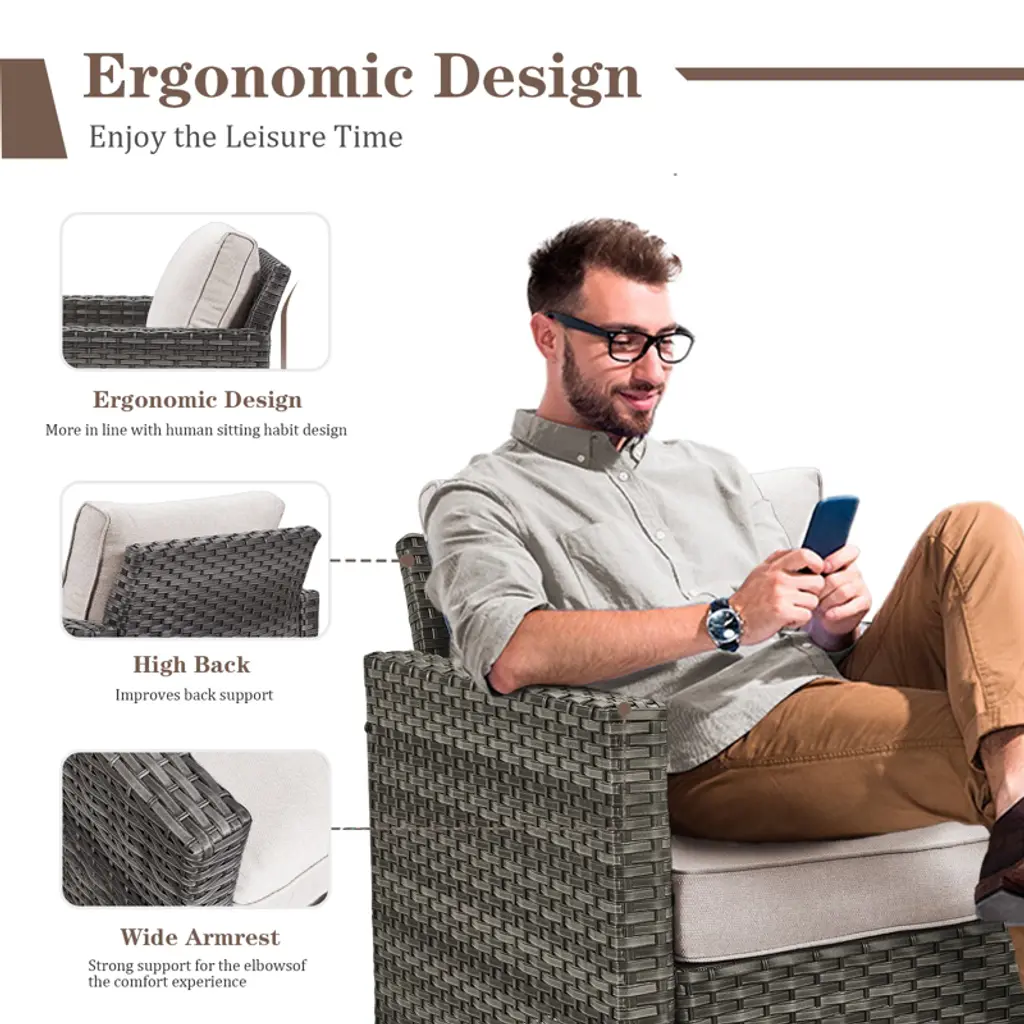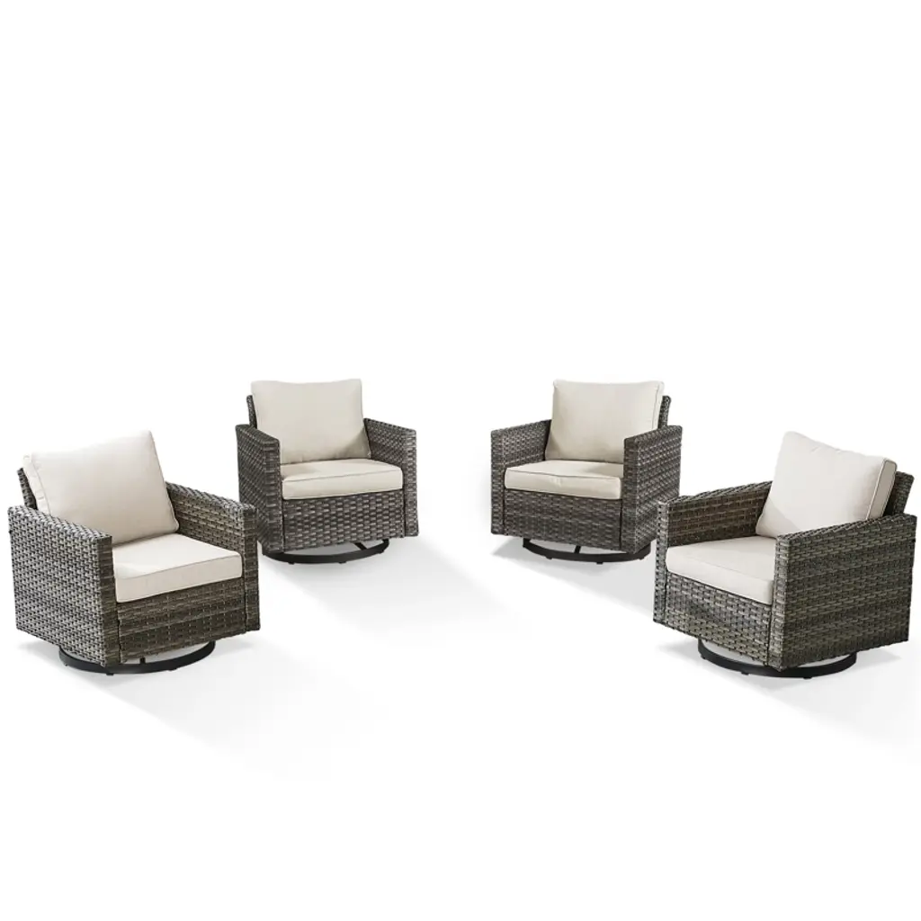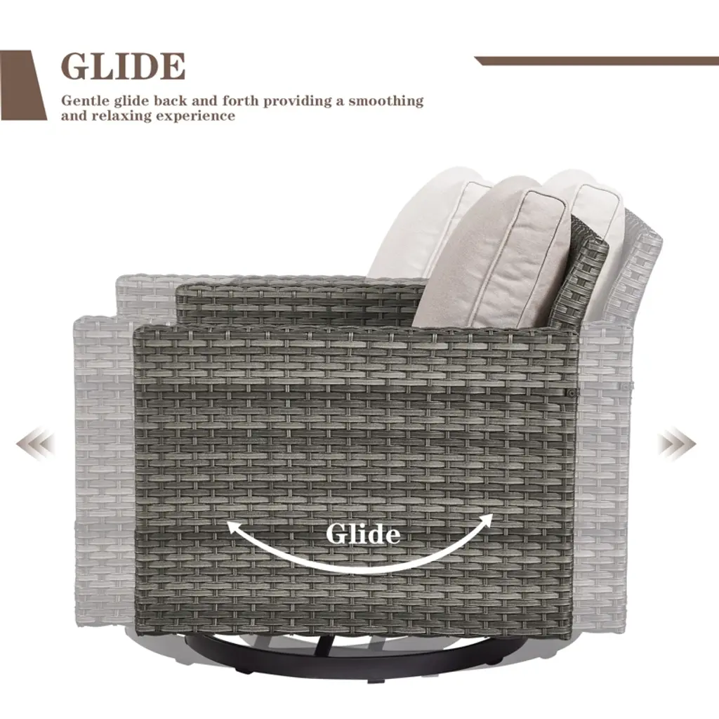 Buenhomino Outdoor Patio Wicker Swivel Chairs - Set Of 4 Outside Rattan Rocker Glider Chair For Front Porch Balcony Backyard Yard,beige/gray