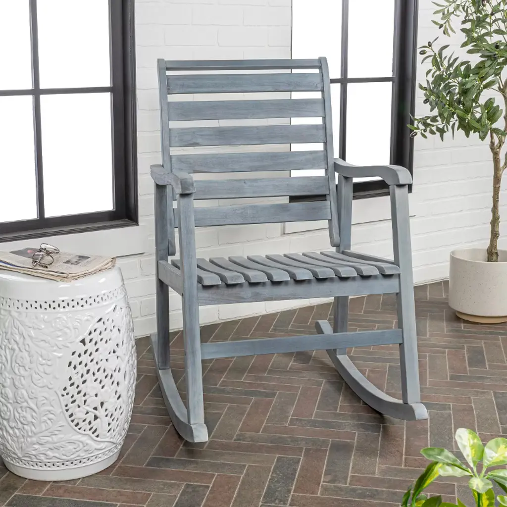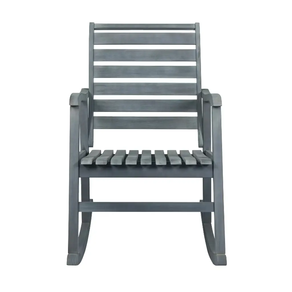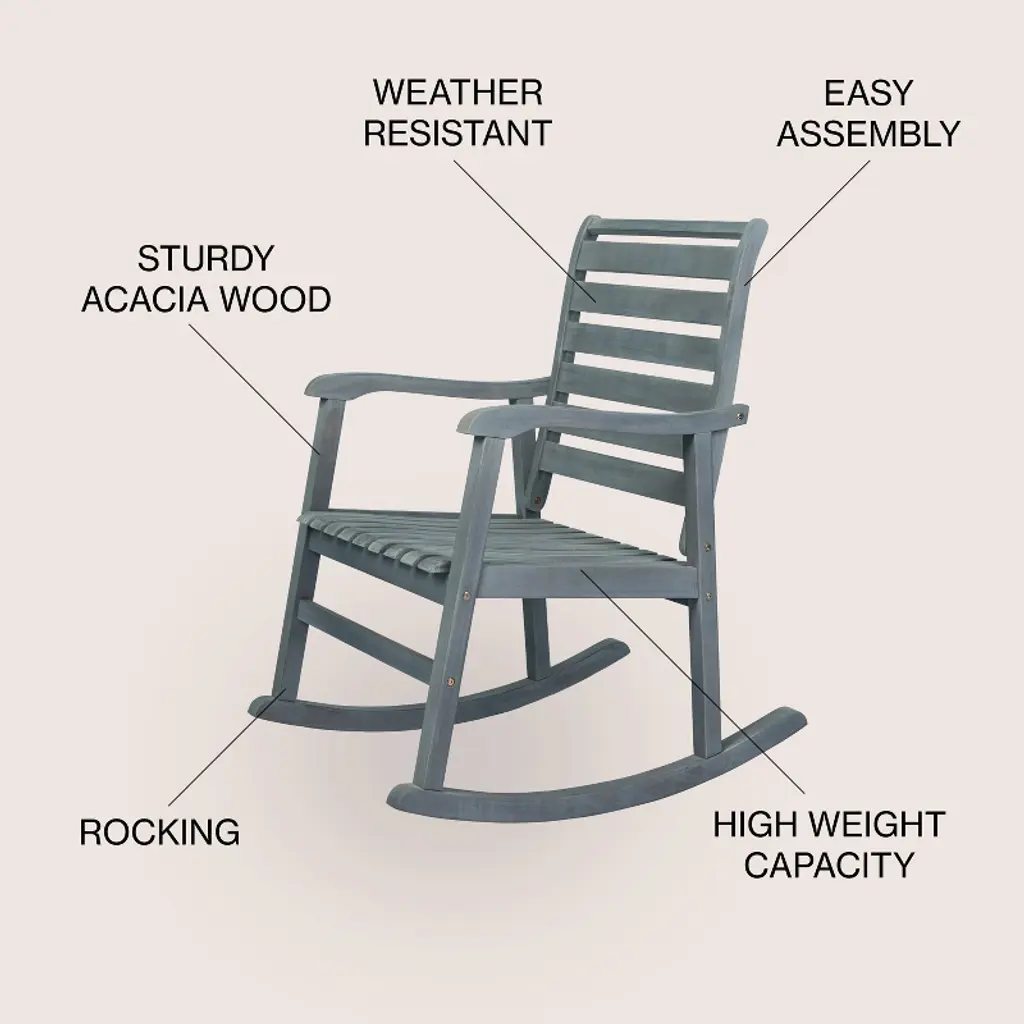 Carey Modern Slat-back Acacia Wood Patio Outdoor Rocking Chair, Gray - Jonathan Y