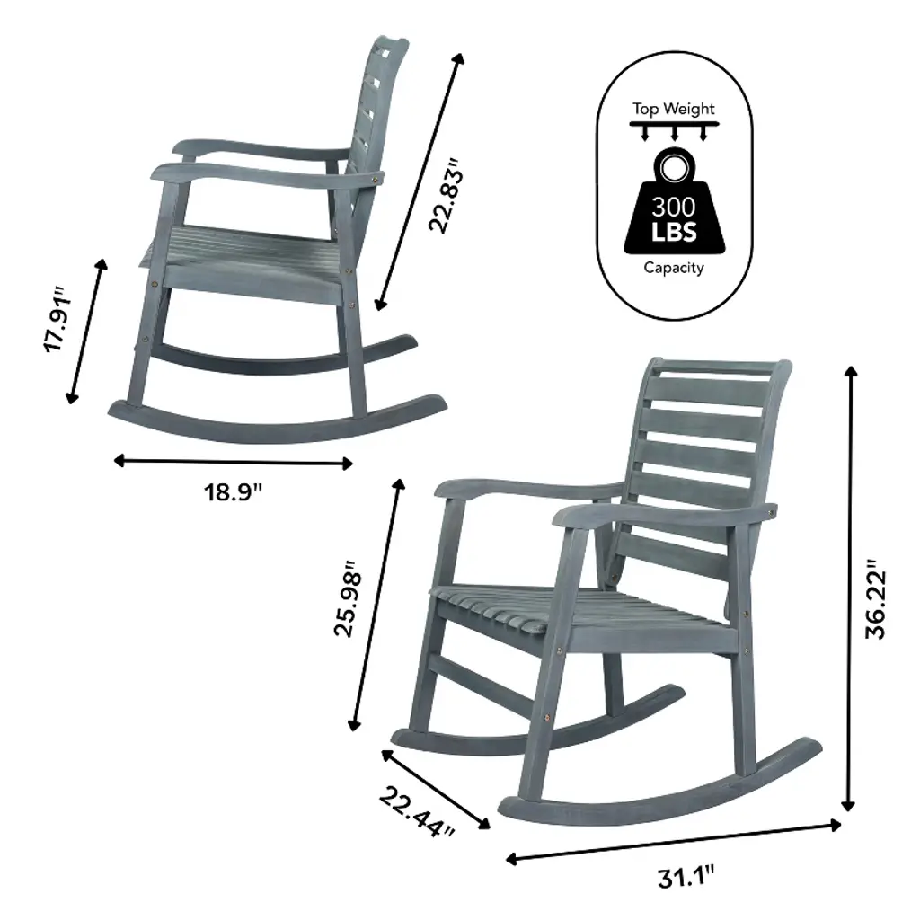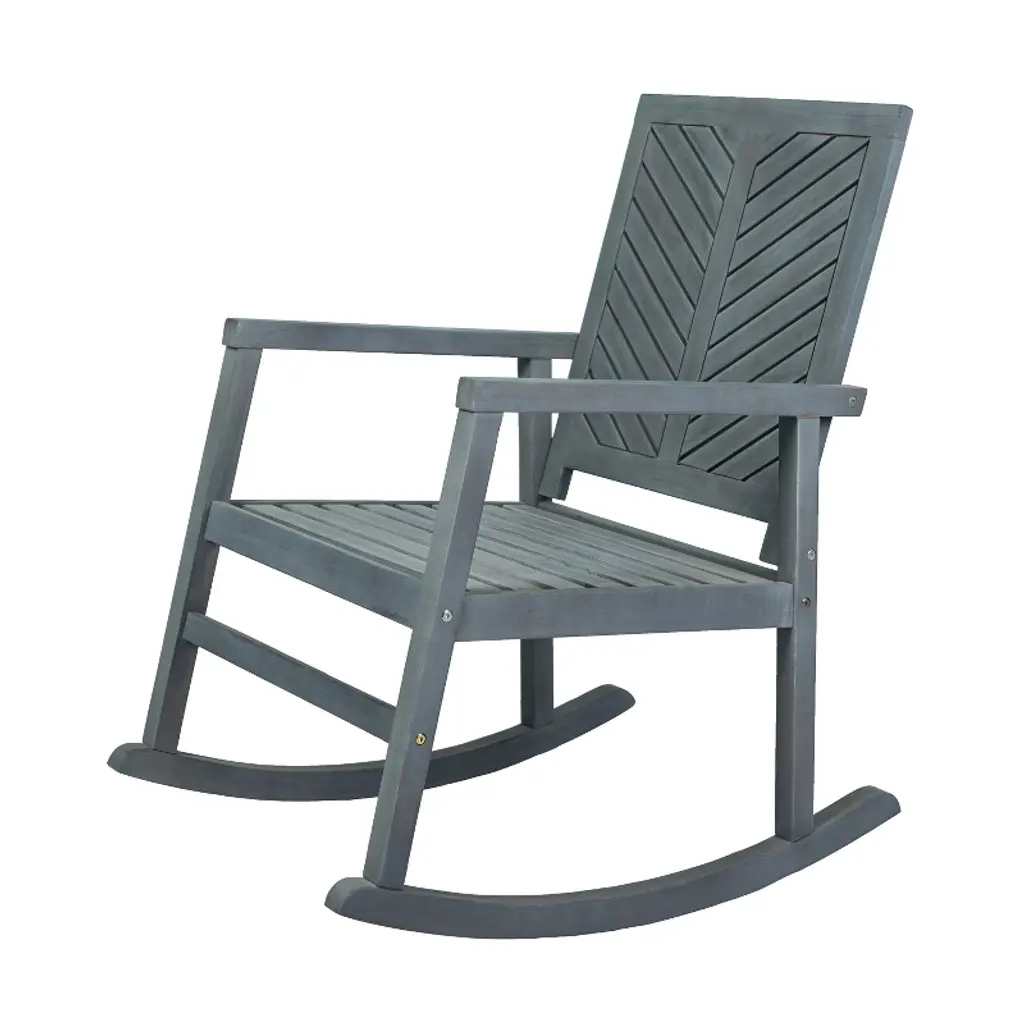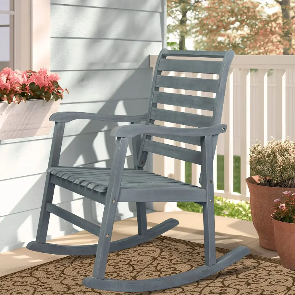 Carey Modern Slat-back Acacia Wood Patio Outdoor Rocking Chair, Gray - Jonathan Y