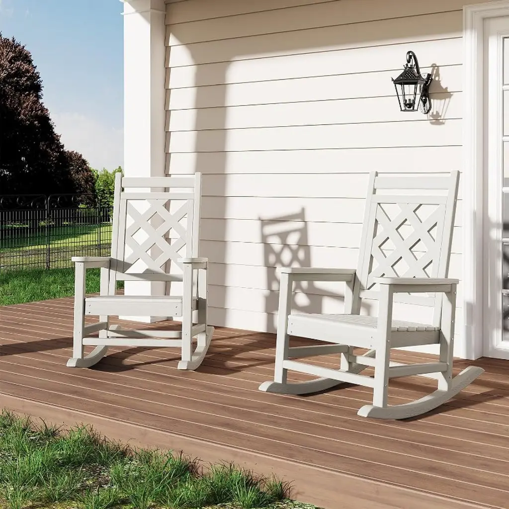 Cavinas 18" Rocking Chair For Balcony Porch, Classic Wooden Accent Chair With High Backrest,white