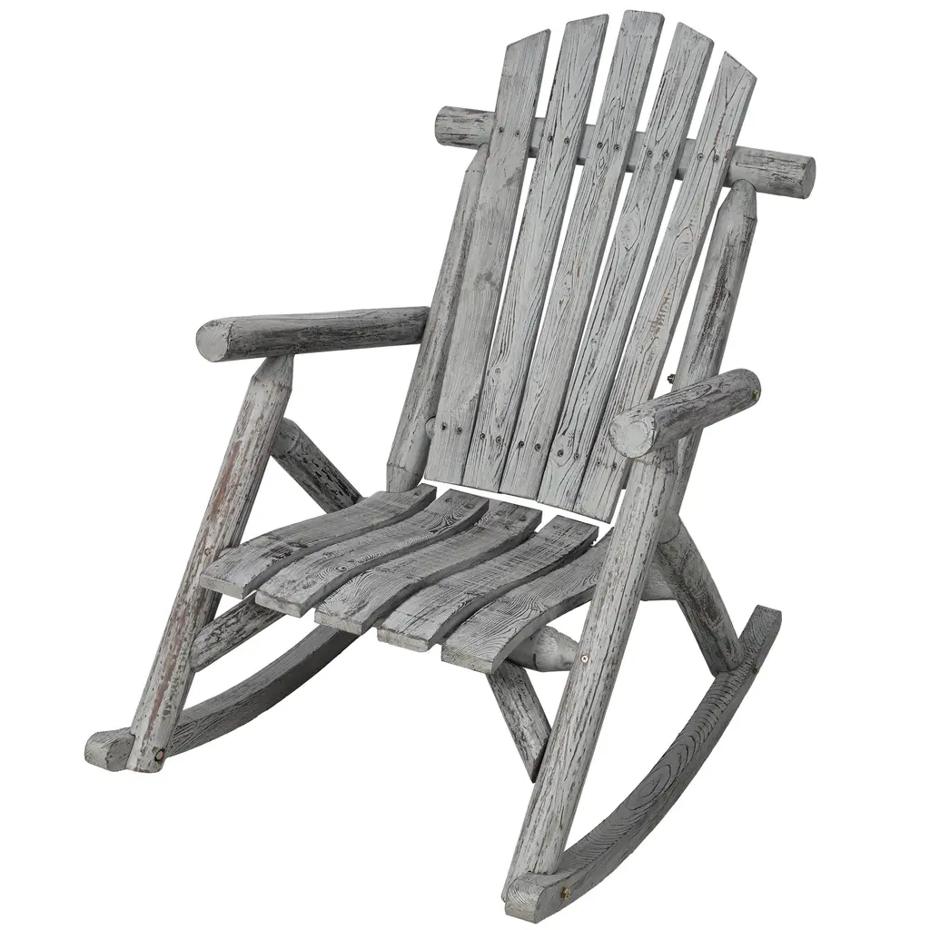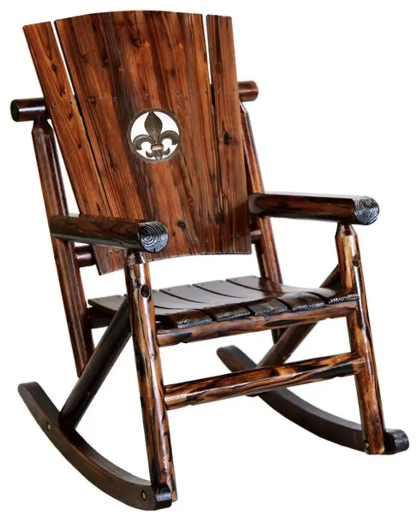 Invite a warm rustic vibe into your home with the Char-Log Rocker. This rustic chair features a star cut-out in the center of the back panel for a down-home accent, and round armrests offer maximum comfort while you kick back enjoying some fresh air. Whether you have a porch, a patio or stoop, this rocker is just the piece to add some bayou flair to experience.Char-log single rocking chairFleur-de-lis cast iron medallionFeatures naturally charred finishEach log is individually cut, milled, charred, and then polishedCuring process helps extend the life of the wood by preventing mold and mildew, insect infestation, and rendering them fire-resistantAll the logs are pre-checked to prevent further cracking from the natural expansion and contraction that occurs with weather changesLogs sealed with a clear coat of varnish for a glossy finishTo extend the life of your product, and protect the charred finish, please use in a covered spaceColor: BrownMaterial: Pine wood and fir woodDimensions: W 30" x D 36" x H 45"