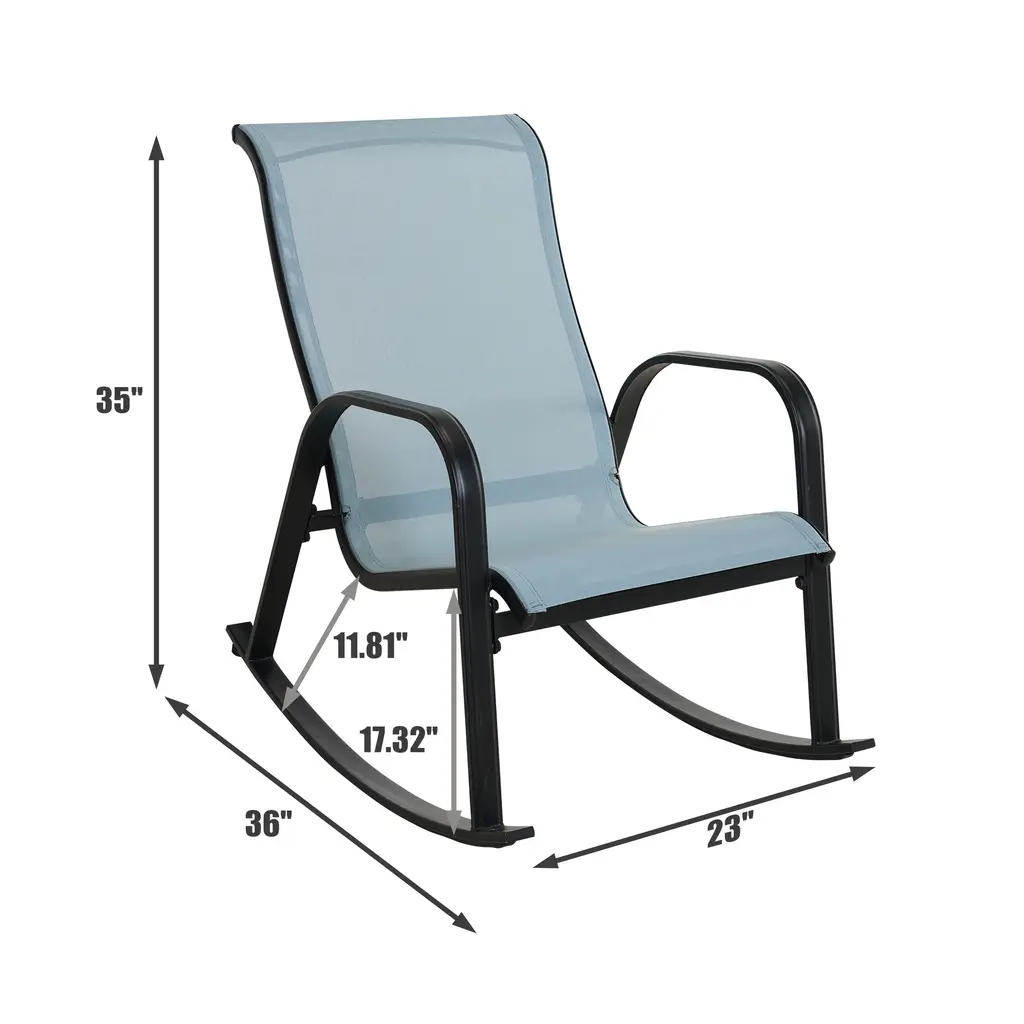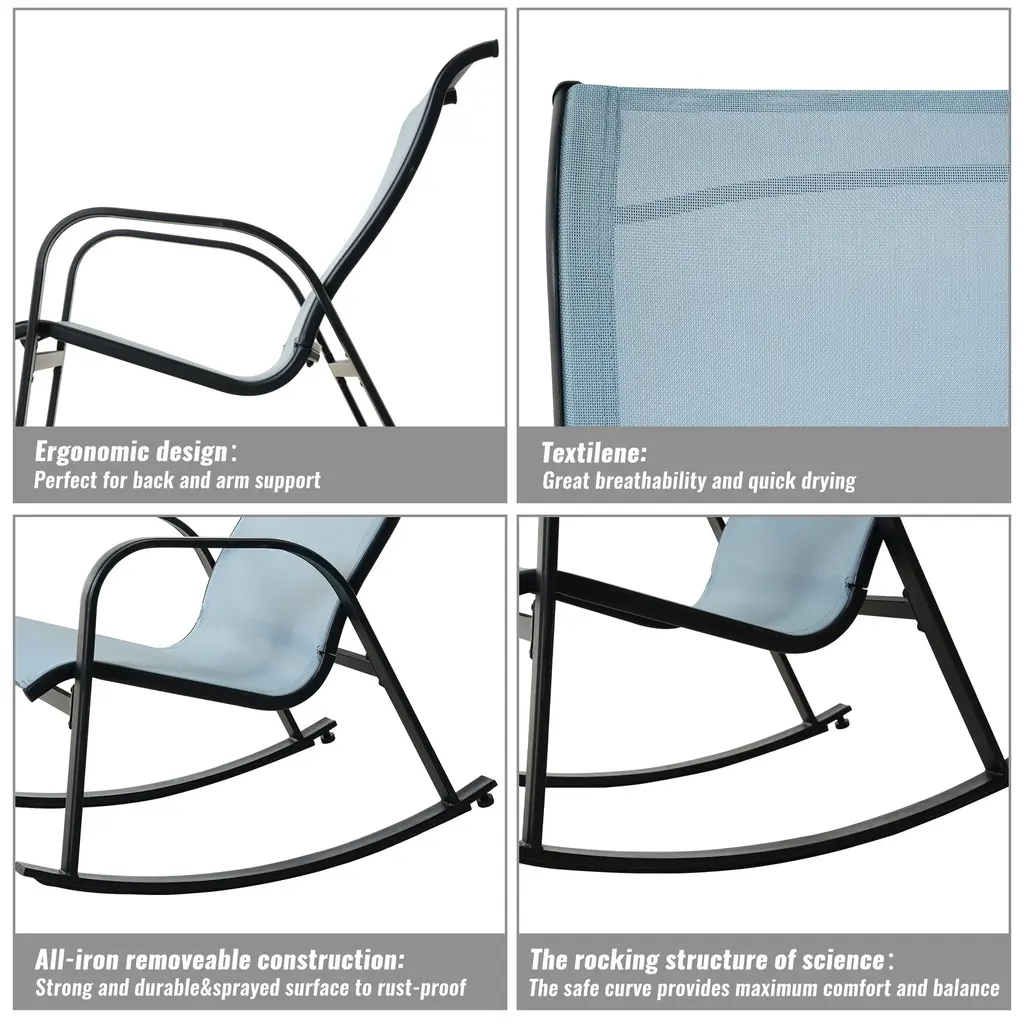 Clihome Single Iron Frame Removable Teslin Rocking Chair, Dining Set - Blue