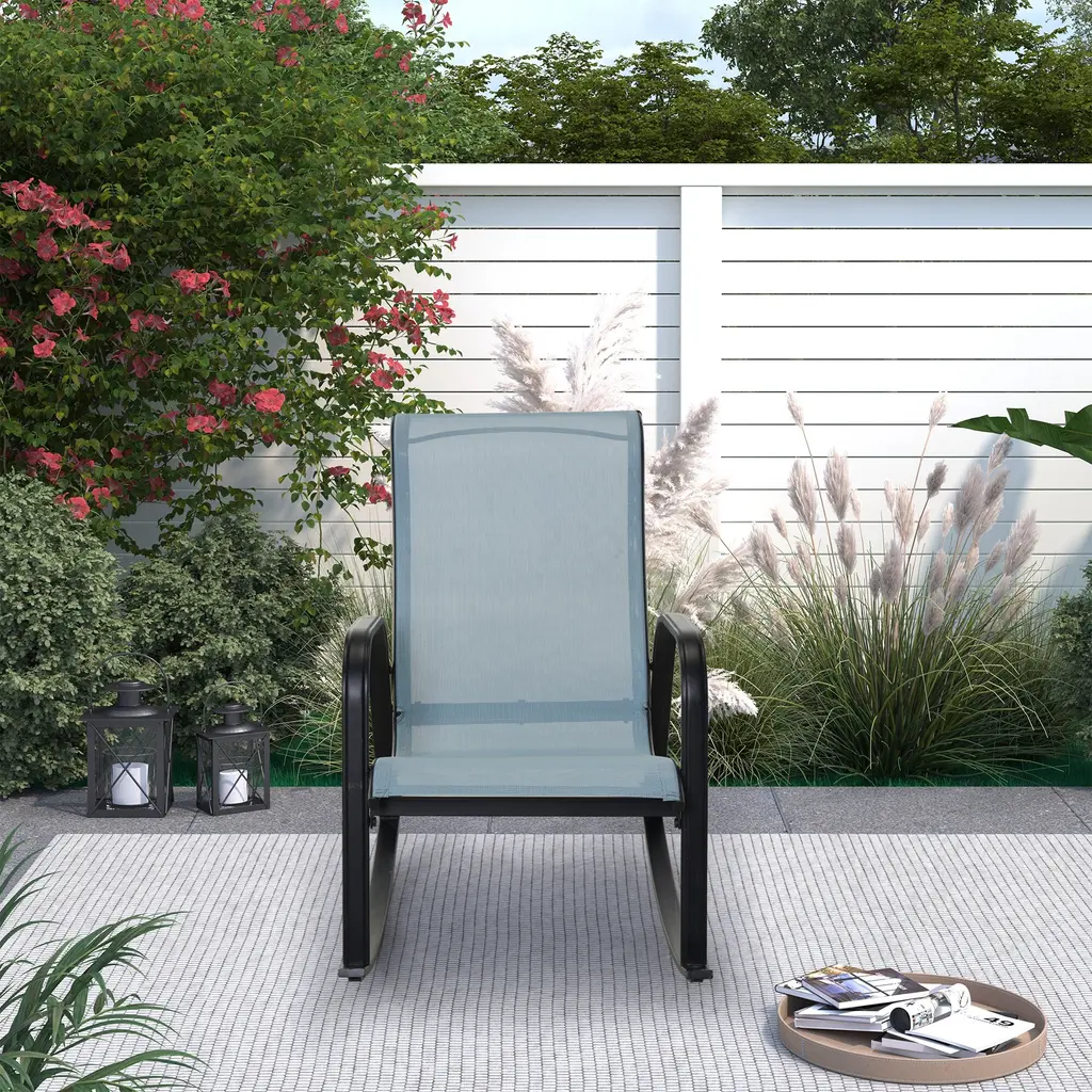 Indulge in relaxation with our steel patio rocking chair, featuring a sturdy, detachable structure and a weather-resistant finish. The breathable Teslin fabric seat and backrest ensure comfort, while the ergonomic design and smooth rocking motion make it perfect for your outdoor leisure time.