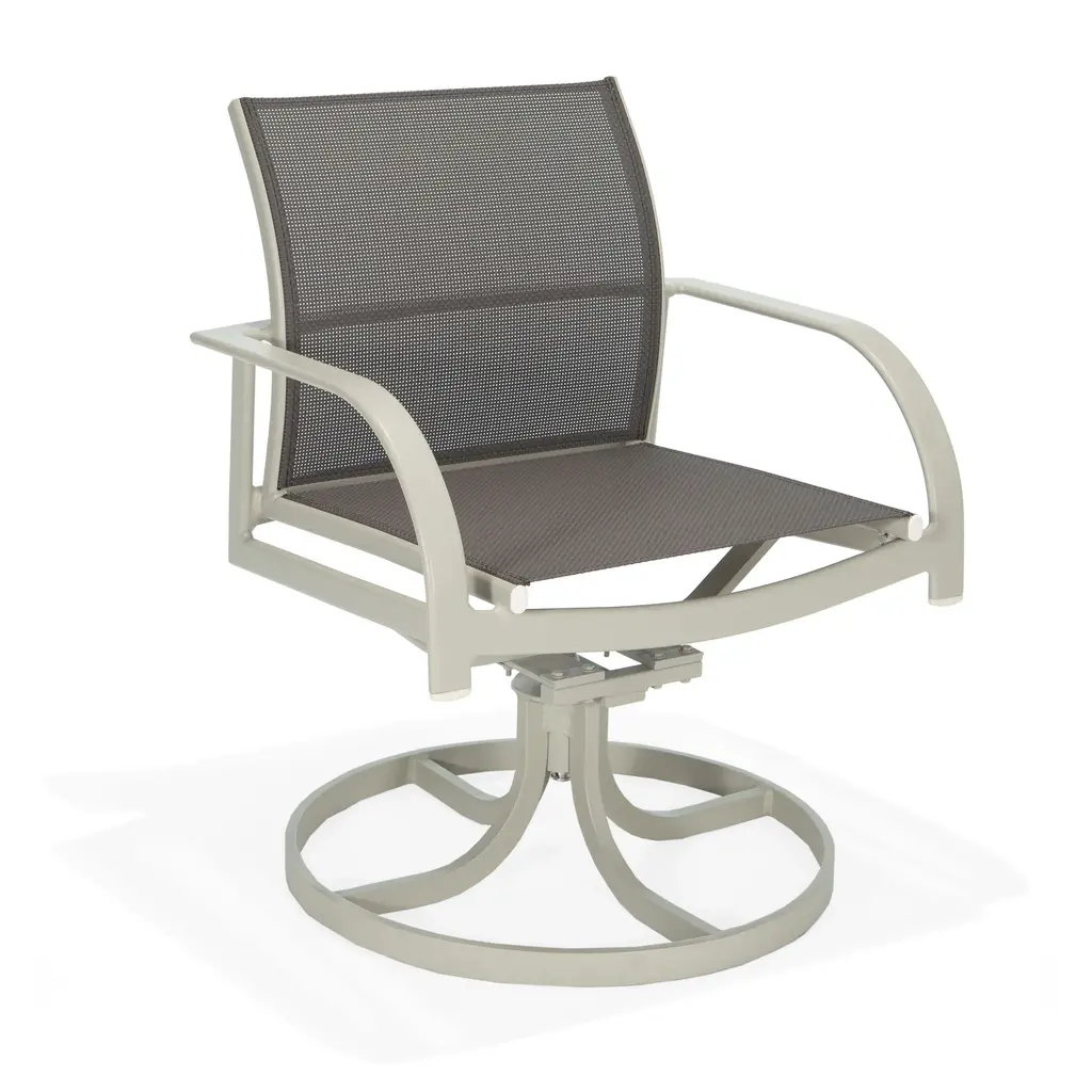 Coral Reef Sling Swivel Rocker Dining Chair - Celedon/matte Cane Weave Gray