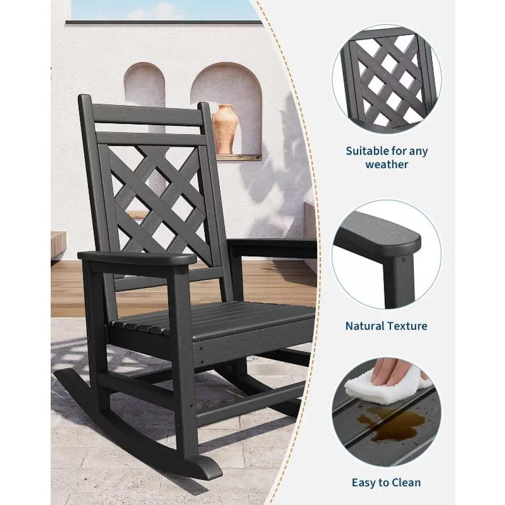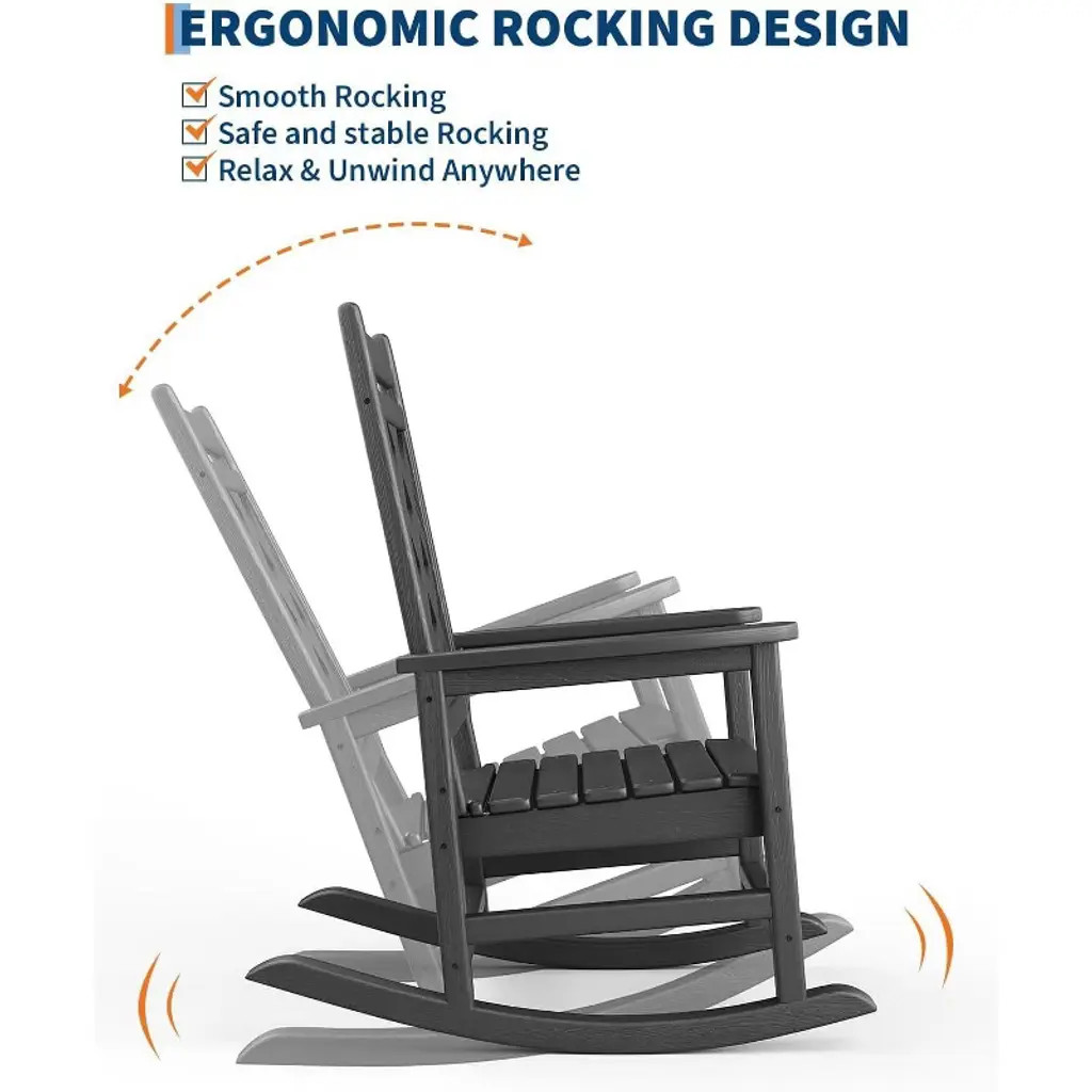 Coucheta Rocking Chair Set Of 2 - Oversized Outdoor Rockers With Wood Look, All-weather Hdpe Black(380lb Capacity)