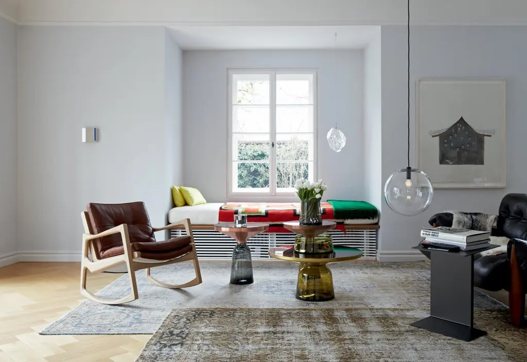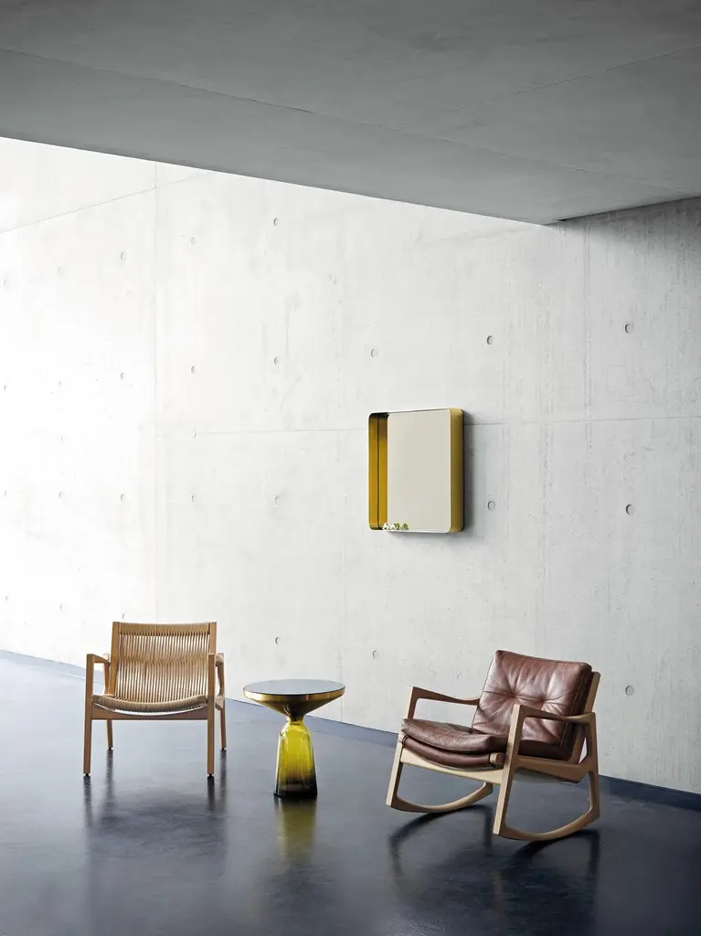 The Euvira rocking chair by Jader Almeida is a masterful blend of yesterday and today, lightness and solidity. With its precisely orchestrated flowing lines, thickening and tapering to form a pleasing rhythm, the chair is a signature expression of contemporary design. At the same time, the choice of materials and their treatment recalls the work of the great Brazilian design masters of the 1960s and 1970s. While offering all the comfort of a capacious rocking chair, the piece’s fine lines and the way the armrests and runners taper towards the middle make an airy and elegant impression from any angle. The cord seat and backrest lend the chair a special lightness and transparency, unfolding a fascinating graphic play of lines especially when in motion. The version in dark stained oak with black cord attests the most strikingly to the origin of its designer. In pale oak with hemp-colored cord, the chair looks almost like a Scandinavian furniture classic. With fabric or leather upholstery, it takes on the feel of an elegant club chair. In every version, though, it oscillates effortlessly between past and present, stability and elegance.Rocking chair. Frame of solid oak. Choice of hemp-colored nylon cord seat or upholstery in leather or fabric with polyurethane padding and rubber belts. Undersides of runners have (non-slip) felt inserts. Made in Germany. Dimensions: W 72 cm, D 75 cm, H 65 cm, SH 36.