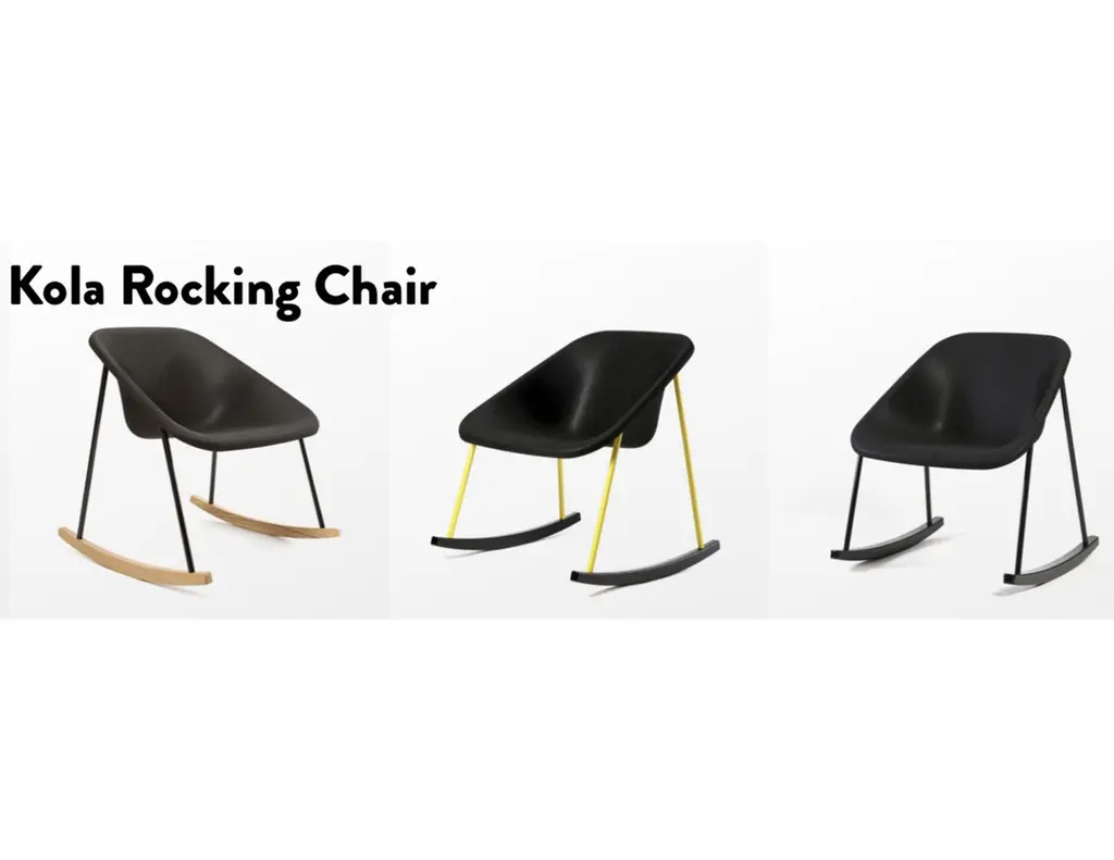 Kola Rocking Chair combines the ingenious felt seat with strong steel frame and wooden rockers. This combination of materials allows the chair to offer superb comfort, light weight and durability to lobbies, lounges and waiting areas.Kola is a family of chairs built around the highly ergonomic form pressed synthetic felt seat that is combined with various leg types to provide versatile seating for diverse spaces. The Kola seat is manufactured of polyester felt and is 100% recyclable. This material is highly durable, fire resistant and easy to clean. It pliably adapts to the shape and movement of the body, offering excellent comfort. The seat is only available in black and melange gray, but optional seat cushion is available in various fabrics.Kola has been awarded with red dot award: product design 2012, Fennia Prize 2012 and Good Design Award 2010.Frame epoxy coated or chromed felt cover black or anthracite grey legs ash, birch or oak.Measures: Height 770 mmWidth 680 mmSeat height 430 mmDepth 720 mm.