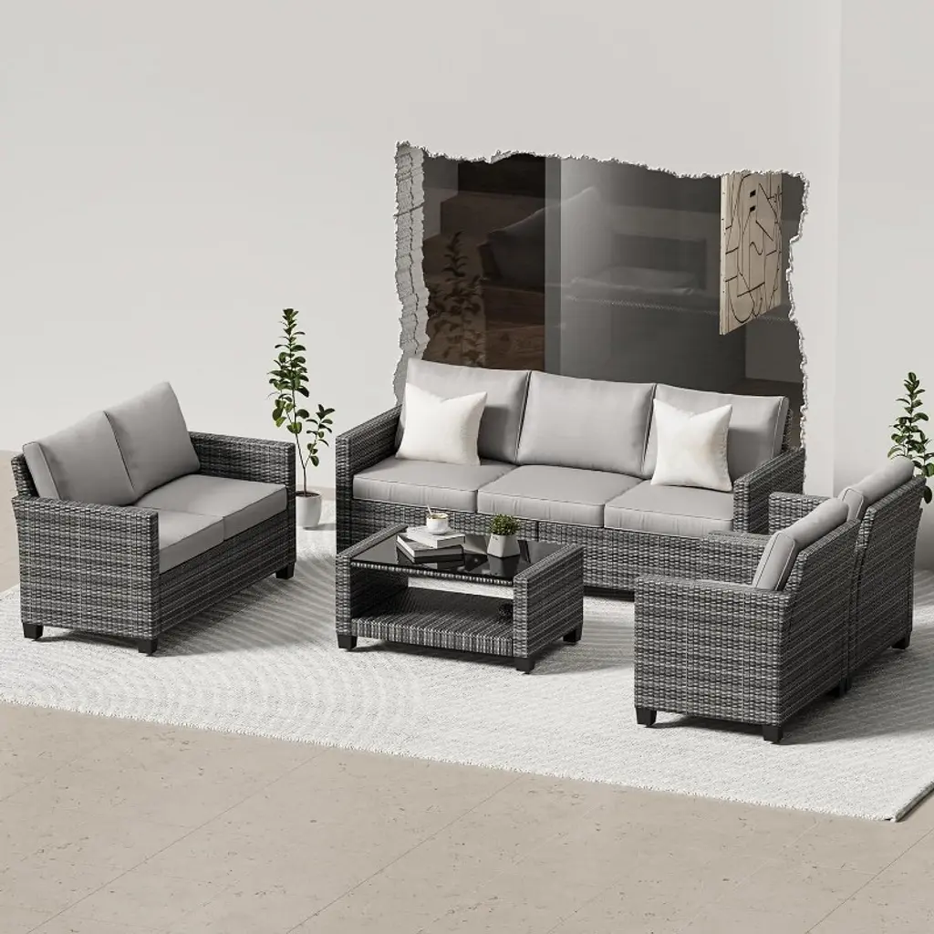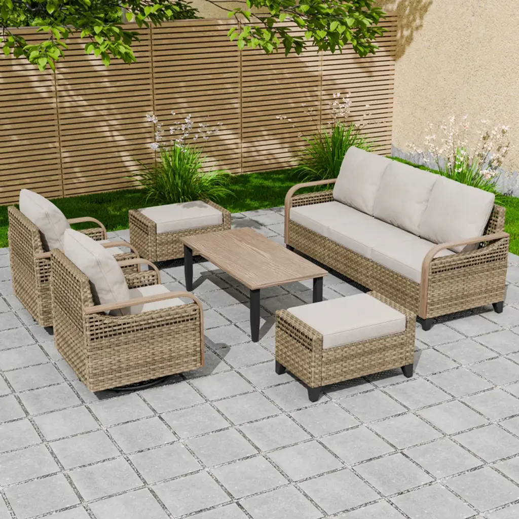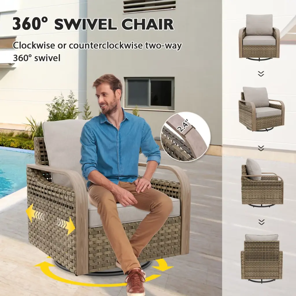 This outdoor rattan furniture set offers a variety of combination options, including outdoor chairs, swivel rockers, a three-seater double sofa, coffee tables and side tables. It is suitable for any space such as gardens, balconies, terraces, porches, pool sides, backyards, corridors or sunrooms, transforming your outdoor area into a stylish relaxation spot.
