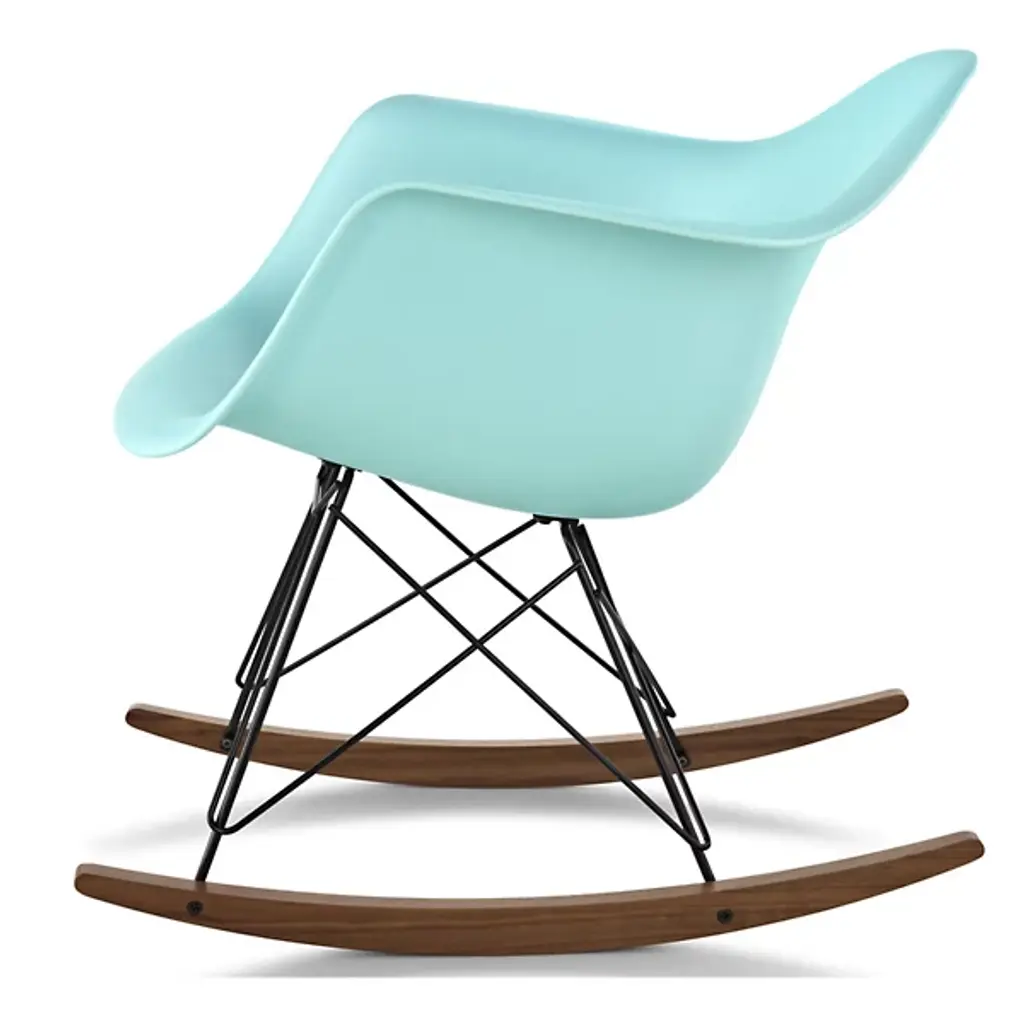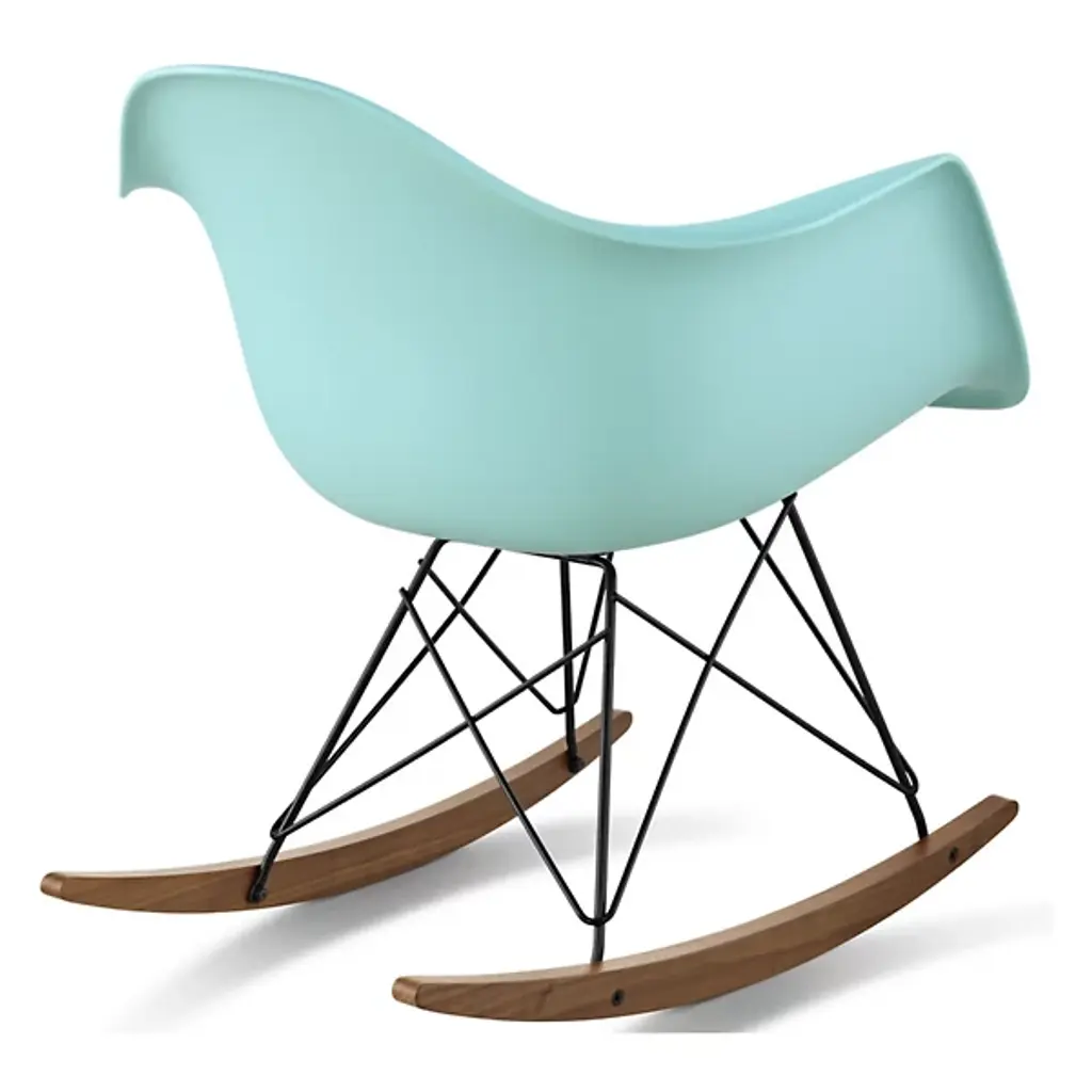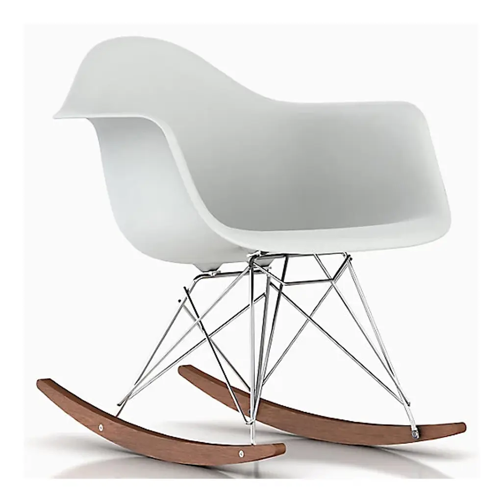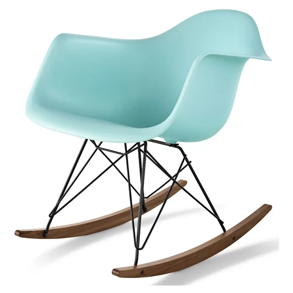 Originally designed by Charles and Ray Eames in 1950, the Eames® Molded Plastic Armchair – Rocker Base by Herman Miller brings a modern edge to any room. The recyclable polypropylene shell has a soft matte texture with a distinct metal base in Trivalent Chrome, White or Black attaching to runners of Ebony, Natural Maple, Walnut or White Ash. This comfortable piece comes in an array of contemporary colors.