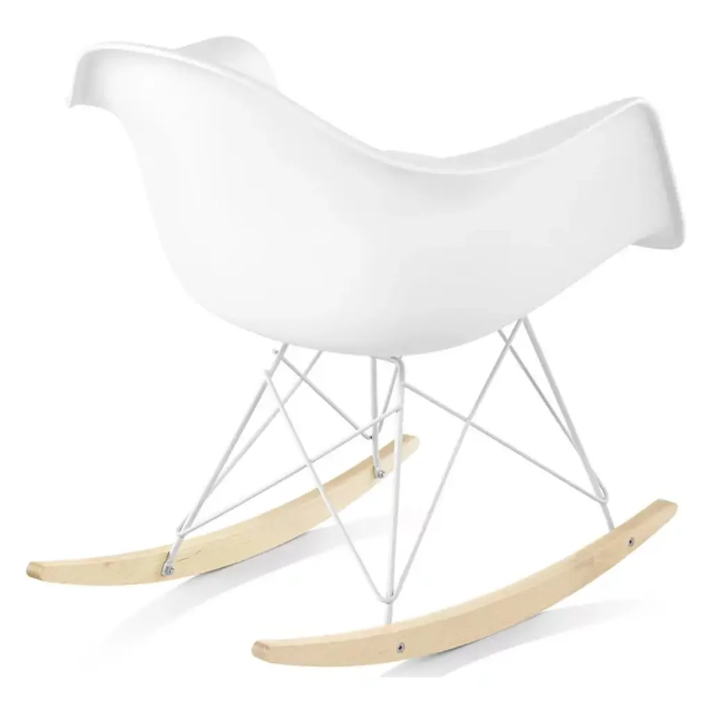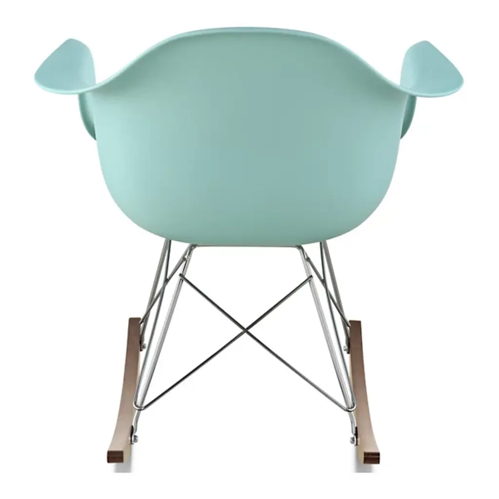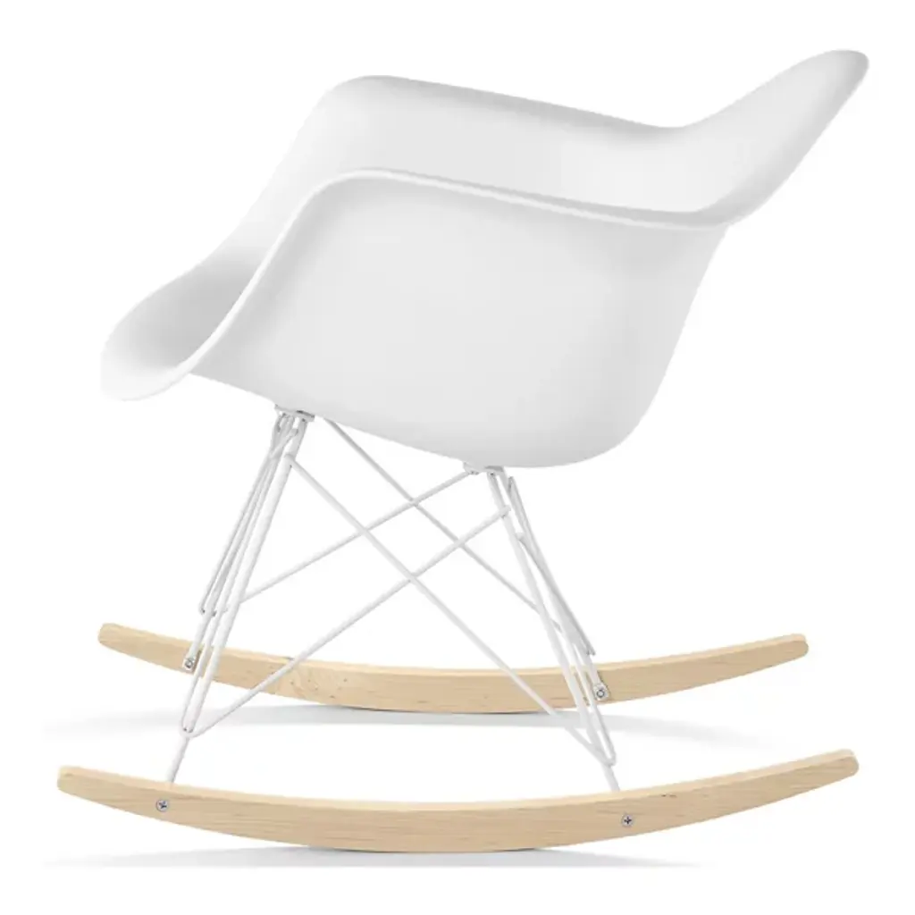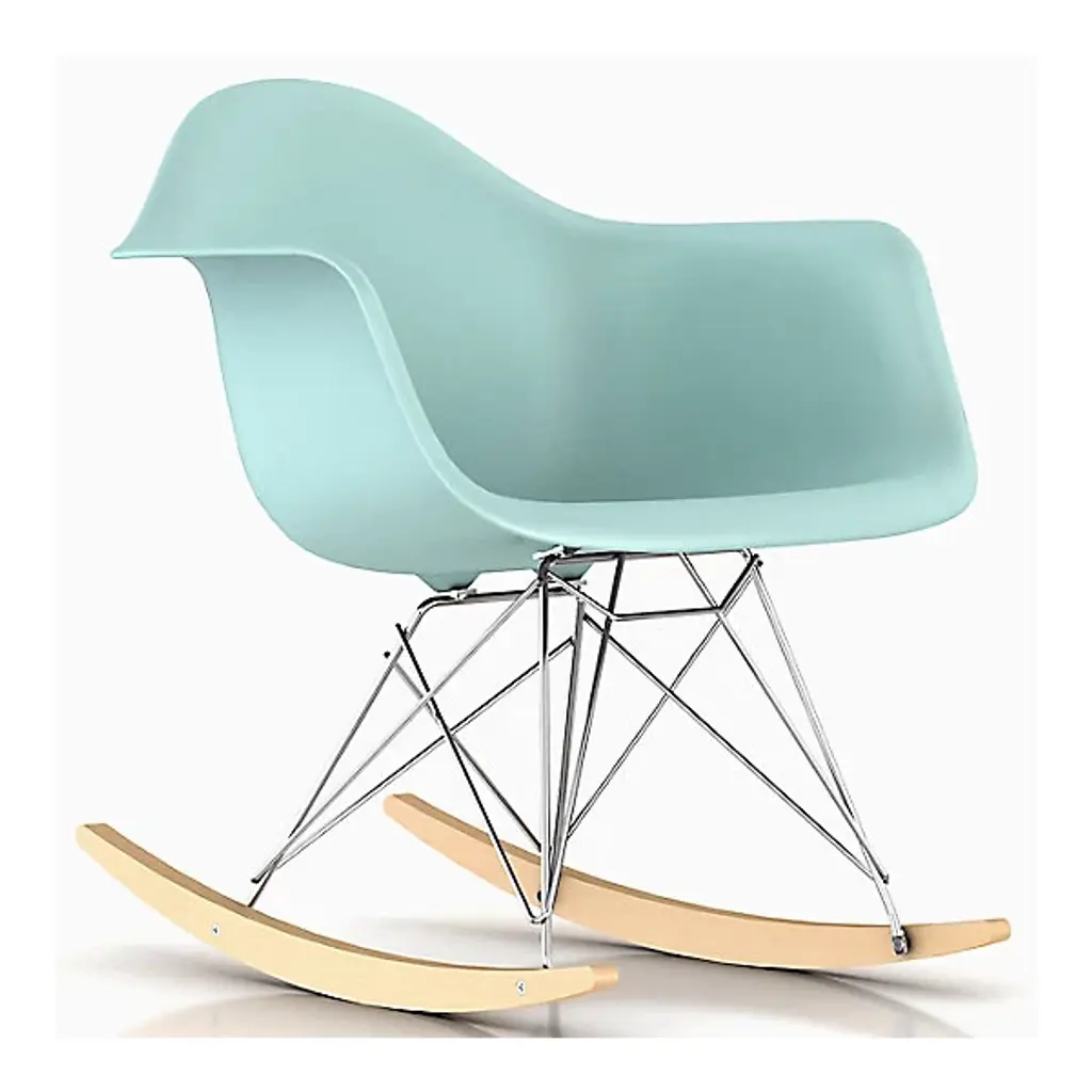 Originally designed by Charles and Ray Eames in 1950, the Eames® Molded Plastic Armchair – Rocker Base by Herman Miller brings a modern edge to any room. The recyclable polypropylene shell has a soft matte texture with a distinct metal base in Trivalent Chrome, White or Black attaching to runners of Ebony, Natural Maple, Walnut or White Ash. This comfortable piece comes in an array of contemporary colors.