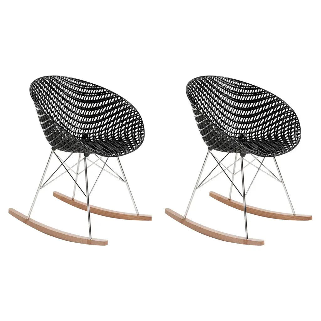 In Charles & Ray Eames' experiments with molded plastics in the 1940s, the Eames® Molded Plastic Armchair - Rocker Base by Herman Miller® was one of the successful results. The molded polypropylene seat is smooth, comfortable and--with a wide range of colors--wonderfully fashionable. The metal frame culminates in solid wood rockers.