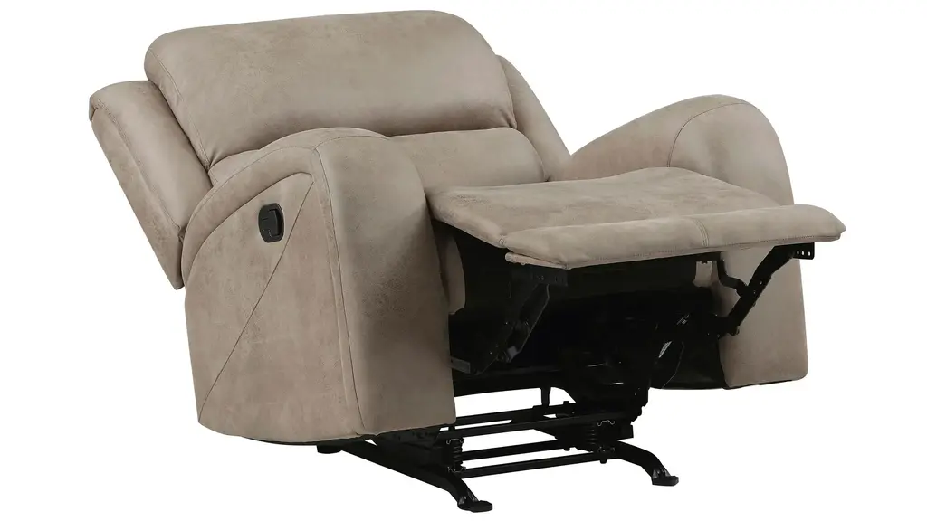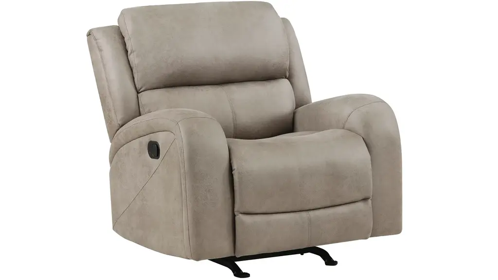 Transitional style is exemplified in the Emillia Rocker Reclining Chair, its design pairing plush contoured seating, and versatility of style to create a relaxing space within your home's living room. The plush contoured profile of the collection is covered in polished microfiber. With a pull of the side mounted tab the reclining mechanism is engaged easing the chair into the prone position. The chair features additional function by way of its rocking mechanism.