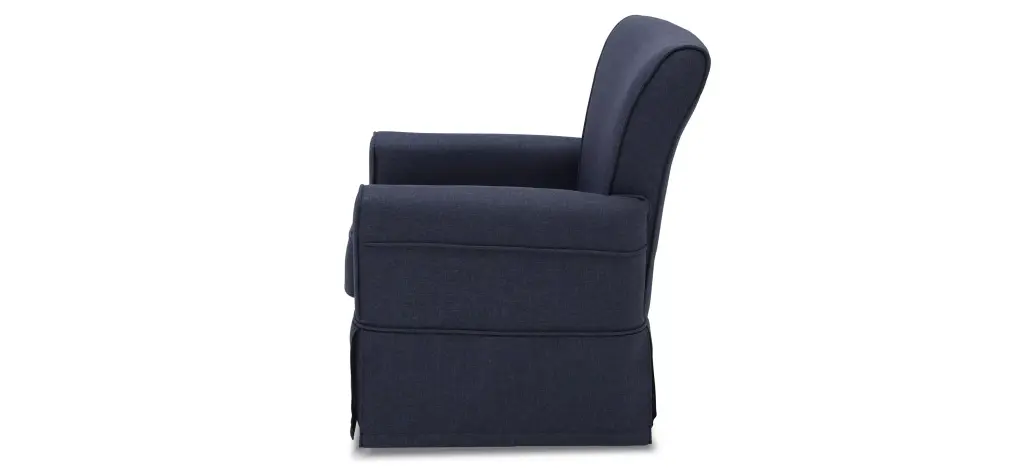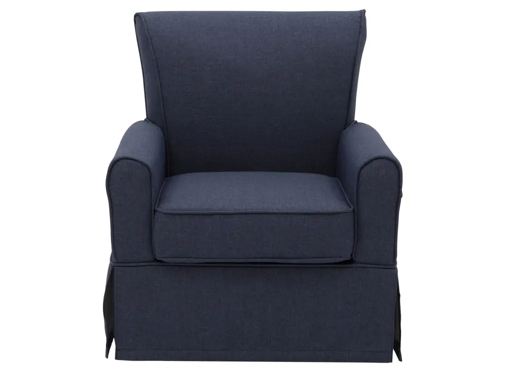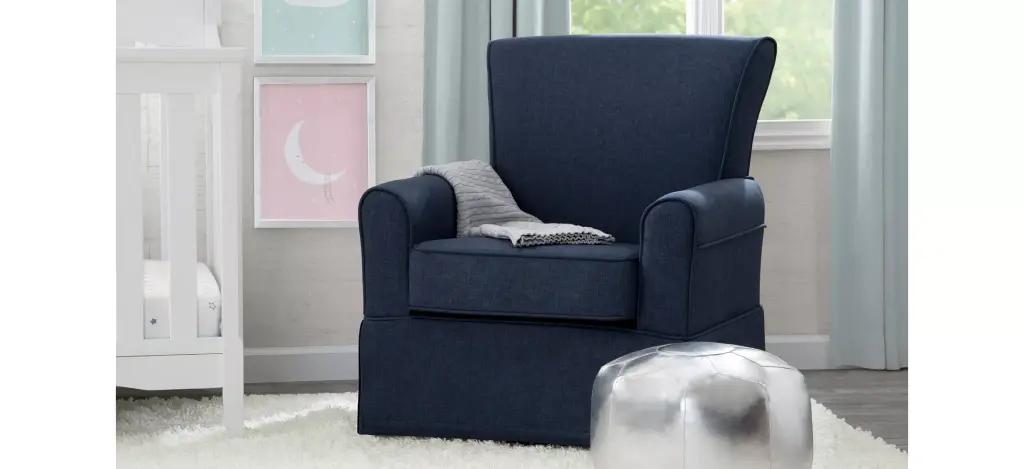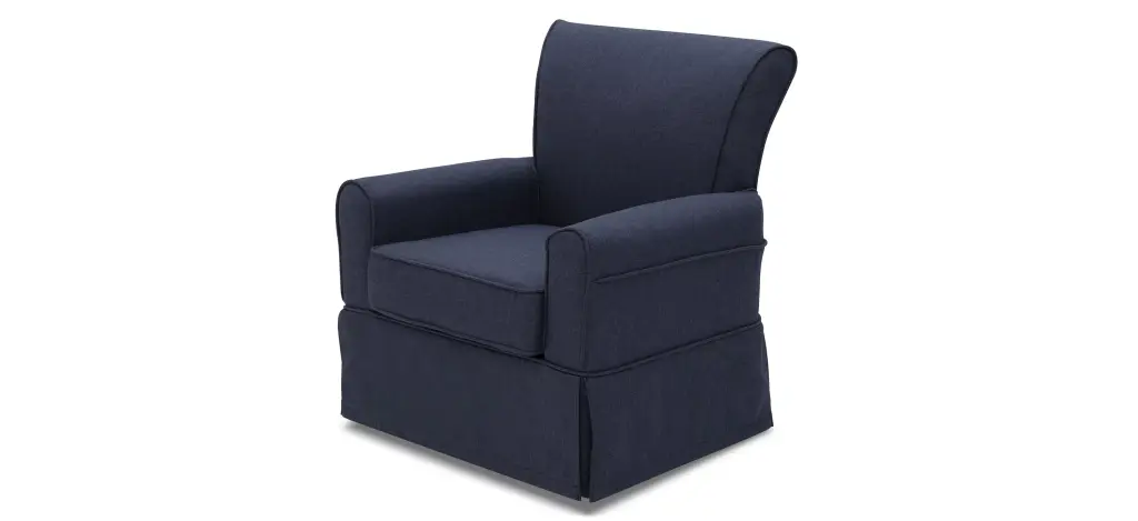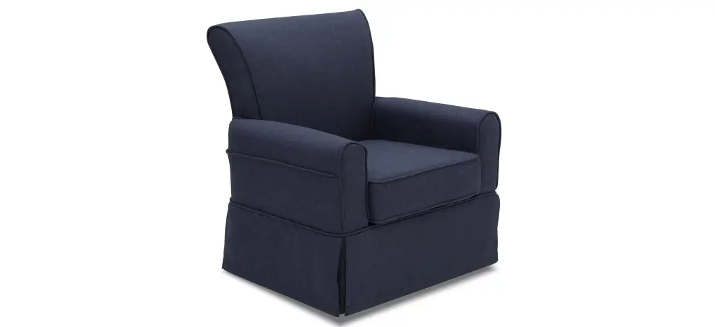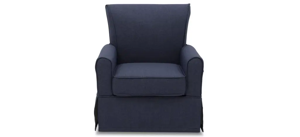 The Epic Nursery Glider Swivel Rocker Chair by Delta Children is casual and cozy without comprising on style. Amply padded, the chair sits about a gentle swivel and glide mechanism, and creates an environment that you and your baby will love to relax in. Crafted with a supportive back and sturdy wood frame for lasting strength, the Epic Nursery Glider Swivel Rocker Chair is upholstered in a super-soft fabric with a matching wrap-around skirt that works well in any room--not just the nursery. This nursery glider is built with long-lasting materials to ensure it stands up to years of wear and tear. Plus, it has been rigorously tested to meet or exceed all industry safety standards.
