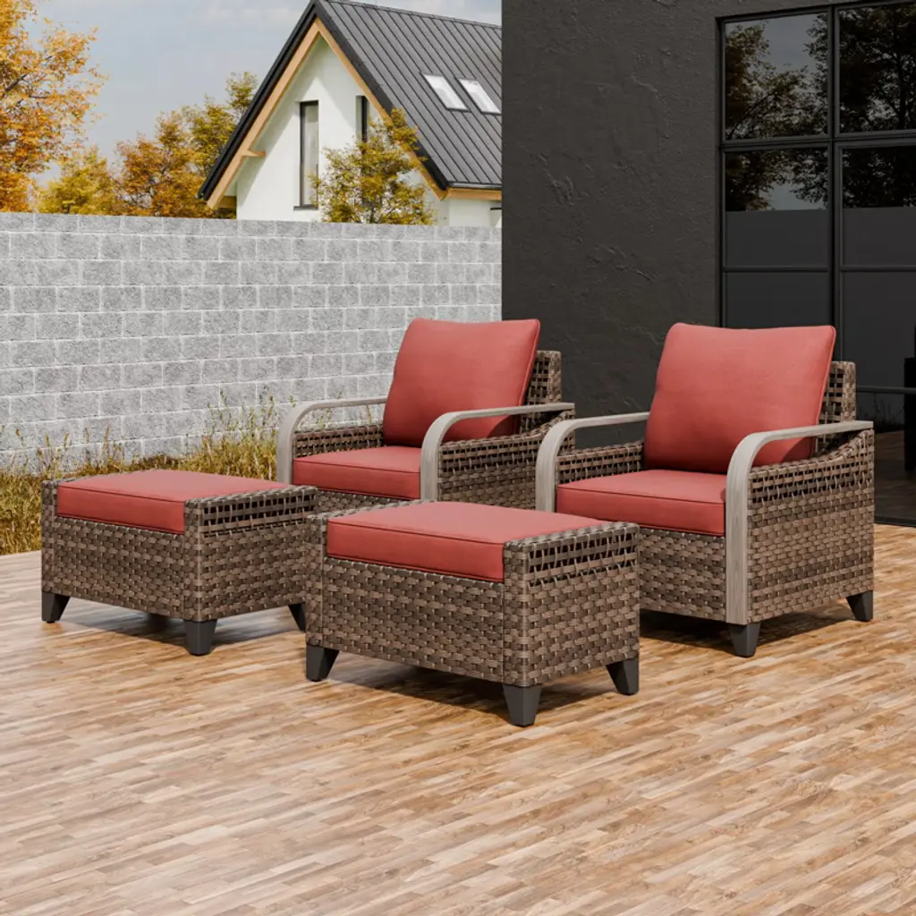 Elevate your outdoor relaxation with our beige 3 pcs Bistro Set, featuring two outdoor rocking chairs and a matching coffee table. The chairs come with ultra-soft 6” beige cushions and 3.5” thick back cushions for maximum comfort. The cushion covers are removable, UV-protected, and water-resistant, ensuring easy maintenance and durability. The set includes a sturdy two-tier coffee table with a polywood tabletop, offering extra storage space for drinks, snacks, or decorative items. Handwoven with beige PE rattan and supported by a strong steel frame, this set is weather-resistant, anti-wear, and perfect for long-term outdoor use. Whether you’re relaxing on your porch, patio, or by the pool, the elegant beige tone blends seamlessly with any décor. Easy to assemble, this patio rattan rocker set is the perfect choice for stylish and functional outdoor seating.