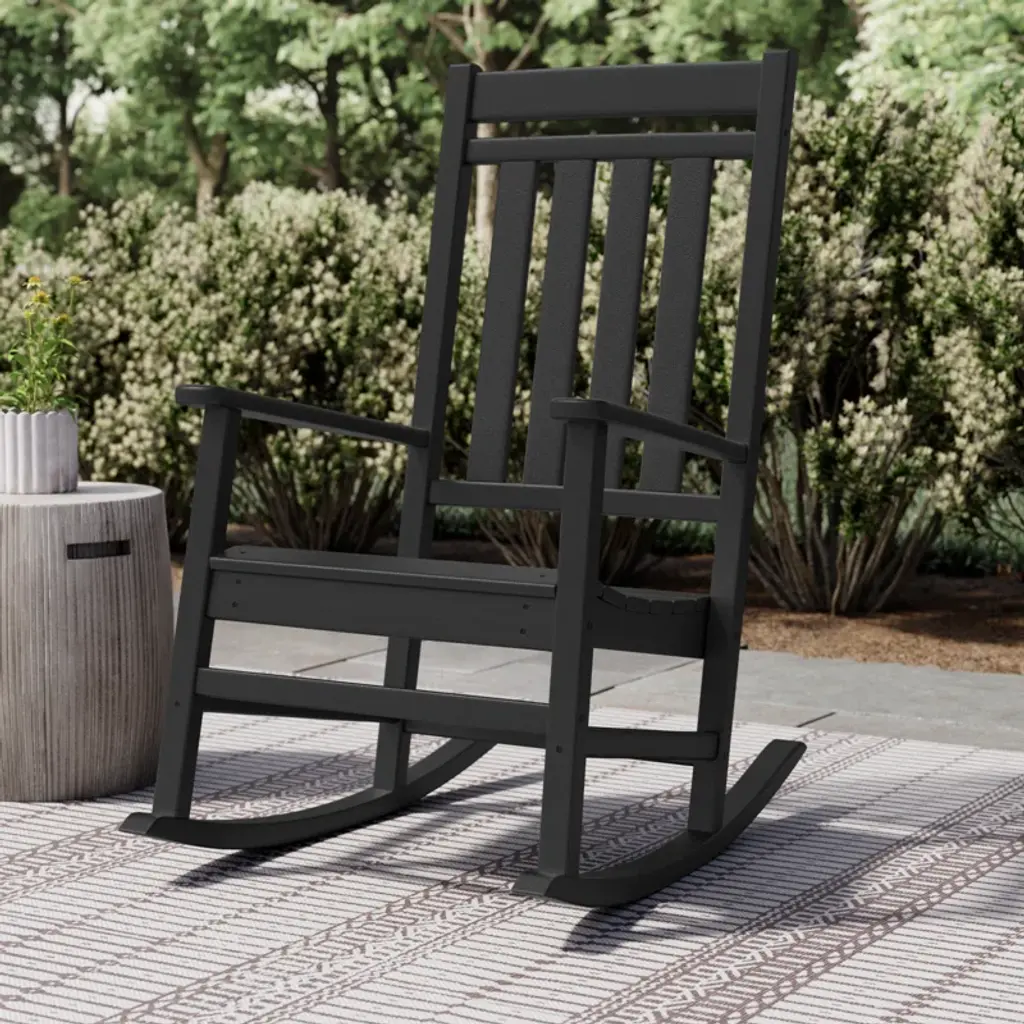 Enhance the look of your front porch with a touch of tradition with the outdoor rocking plastic chair. This classic all-weather rocker pairs well with any of our side tables so you can coordinate the best look for your outdoor space. Your front porch, patio.