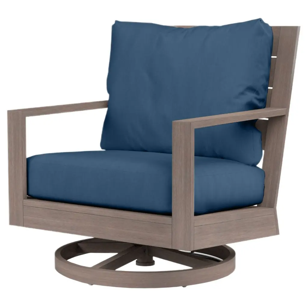 A re-imagination of materials, the Farren collection embodies effortlessly stylish living. Crafted in lasting aluminum, with a hand-brushed finish to mimic real driftwood, Farren captures a timeless look with modern sensibility, offering the look and feel of natural wood with minimal maintenance. The Farren Motion Club supplies clean lines and ultimate comfort, with seamless swivel and rocking movement. It features a fully welded, scratch-resistant powder-coated aluminum frame, weather-resistant high-resiliency foam cushions, adjustable feet, and commercial quality construction.Farren is a part of the Driftwood color story and coordinates well with Neptune, Maye, and Naevia.