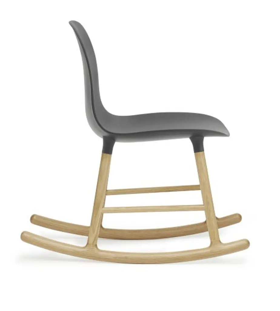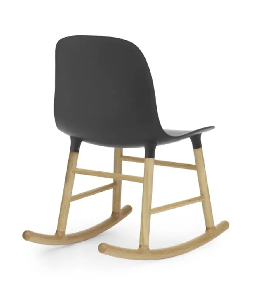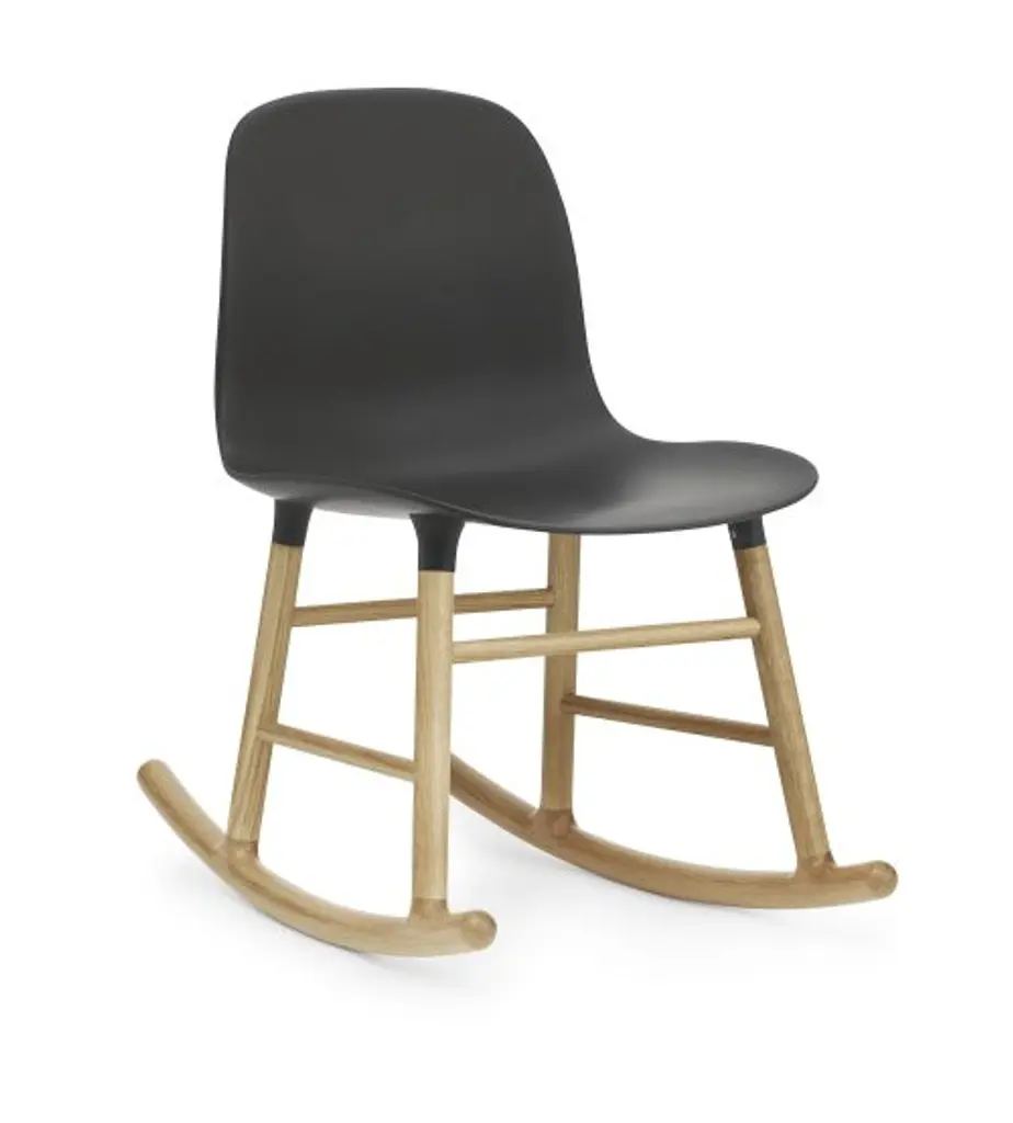 Winner of an iF Design Award in 2016, the Form chair now comes in an even more comfortable version. Designed by Simon Legald for Normann Copenhagen, the Form Rocking Chair features the same elegant blend of materials that highlight the design’s expert craftsmanship. The shell and the legs come together as a unified element, with the seamless joint enhancing the chair’s distinctive appearance. This rocking chair comes in various material combinations and colors, to blend into any décor. Choose between the original plastic shell or select an upholstered seat version. The former comes in various colors that complement the ash wood legs, while the latter is also available with a walnut base.