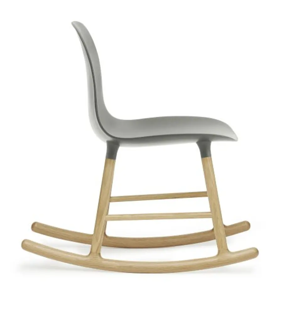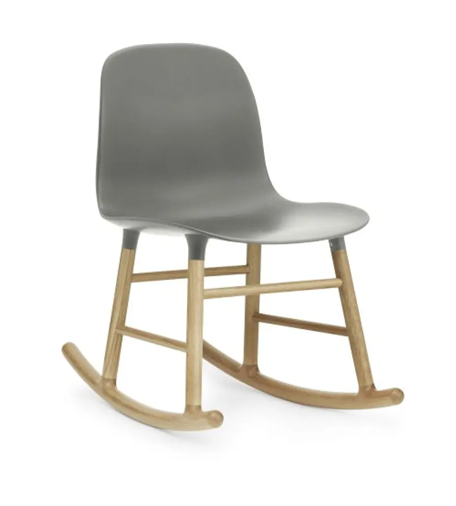 Winner of an iF Design Award in 2016, the Form chair now comes in an even more comfortable version. Designed by Simon Legald for Normann Copenhagen, the Form Rocking Chair features the same elegant blend of materials that highlight the design’s expert craftsmanship. The shell and the legs come together as a unified element, with the seamless joint enhancing the chair’s distinctive appearance. This rocking chair comes in various material combinations and colors, to blend into any décor. Choose between the original plastic shell or select an upholstered seat version. The former comes in various colors that complement the ash wood legs, while the latter is also available with a walnut base.