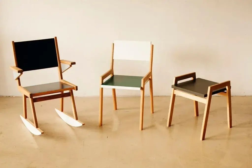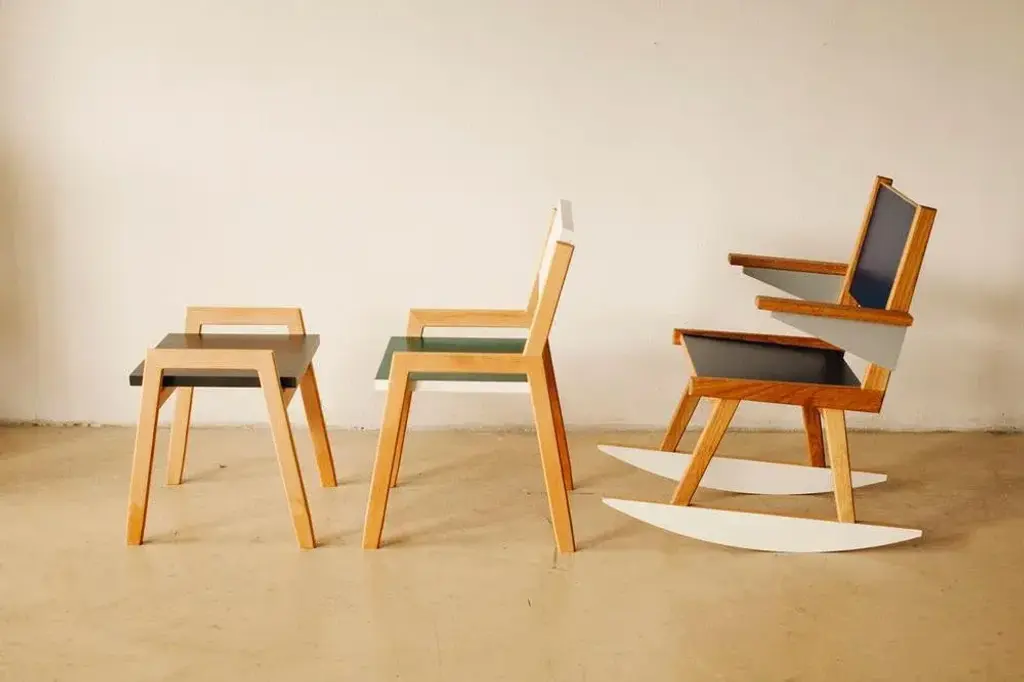 Formica rocker by owl dimensions: h 85 x w 60 x d 80 cm seat h: 45 cm materials: solid wood, colourful formica formica is a series in which material defines form. The collection combines solid wood with colourful formica, creating a furniture series that is open to variations and interpretation, while maintaining a linear principle that unifies the series in a natural manner. All products are customizable each of our designs is handmade in our workshop, using high-quality materials from local suppliers. Owl is a design studio based in barcelona that designs and produces unique furniture and objects, mainly but not exclusively in wood, adaptable and scalable to meet the needs of each client, whether private or professional. Our designs are hand built in-house using high-quality materials from local suppliers. A practice that not only allows us to be conscious and sustainable, but also to create objects that stand the test of time. Additionally allowing us to offer a customization service that covers special and large-scale projects.