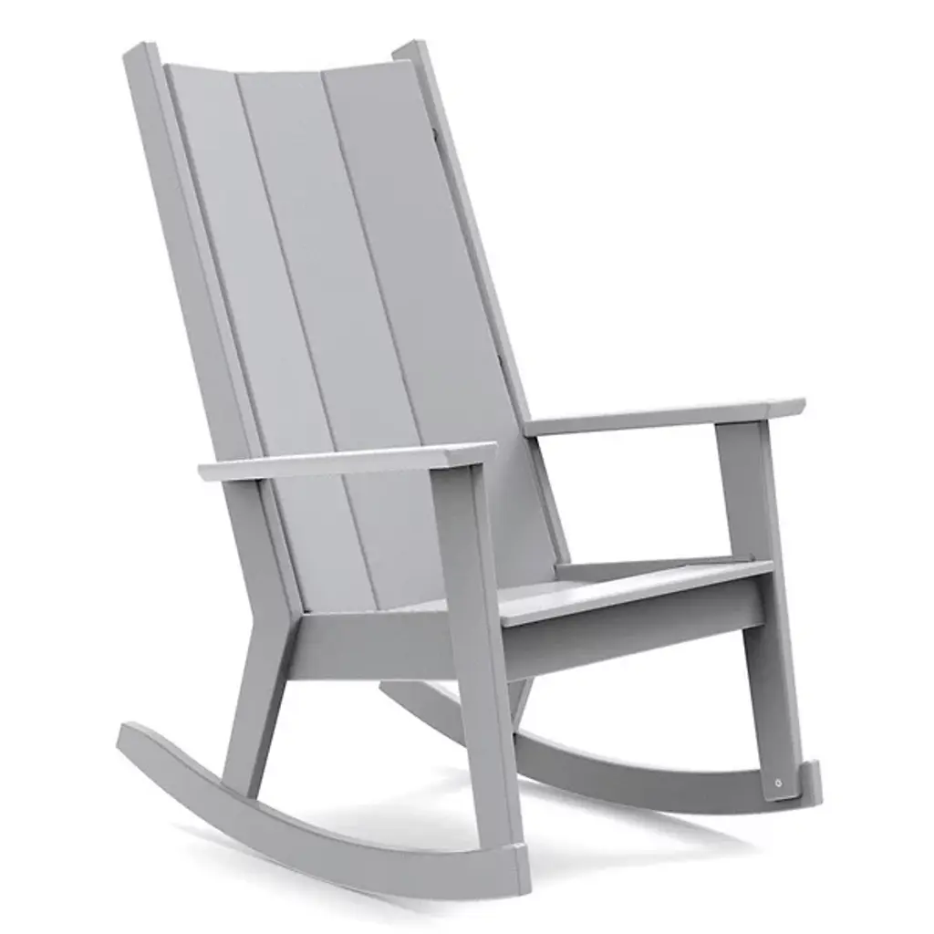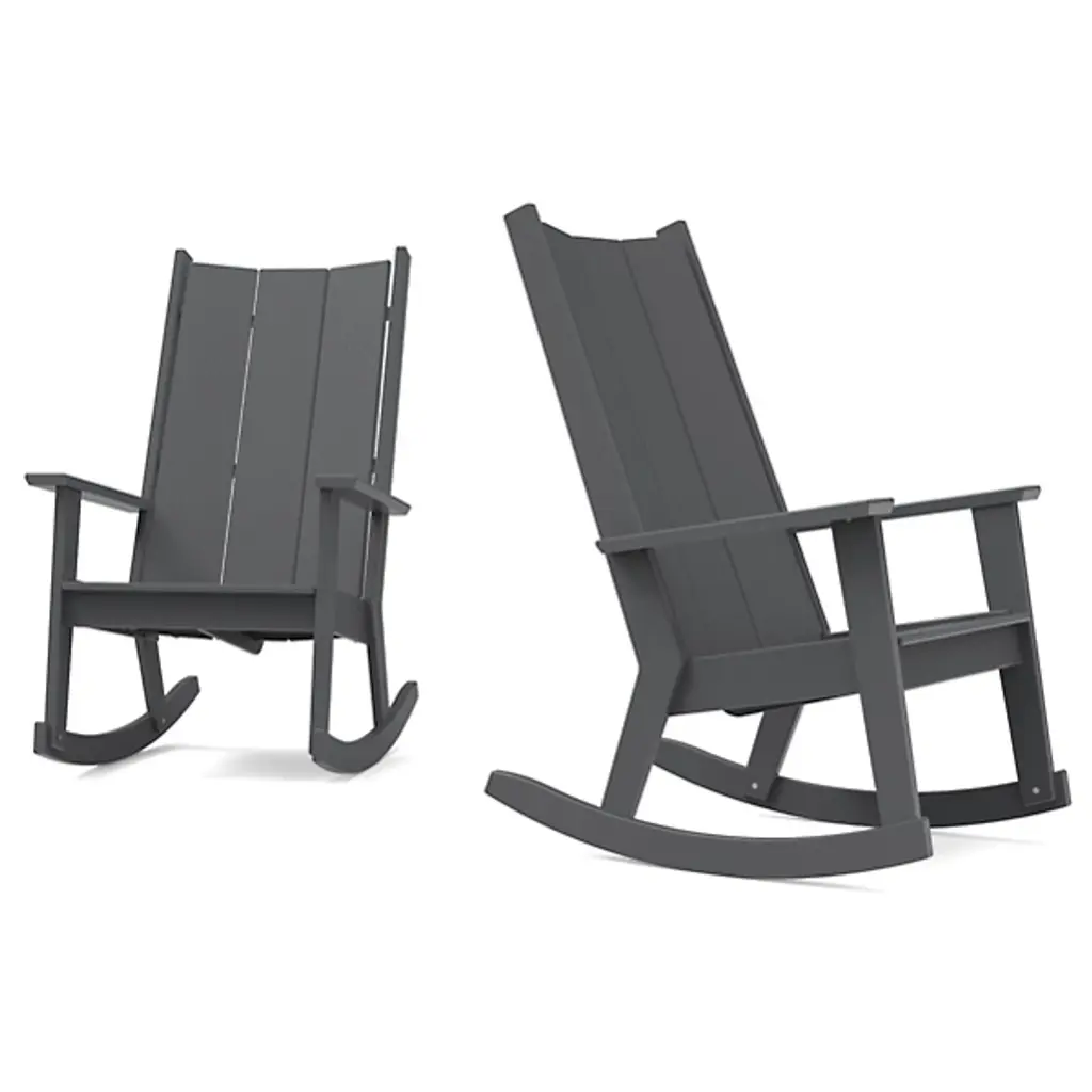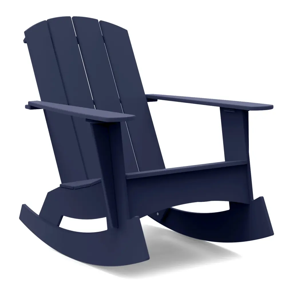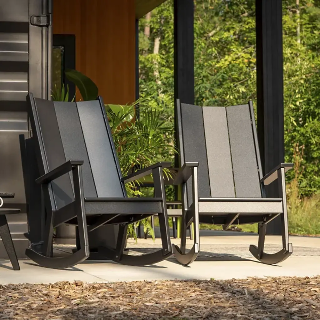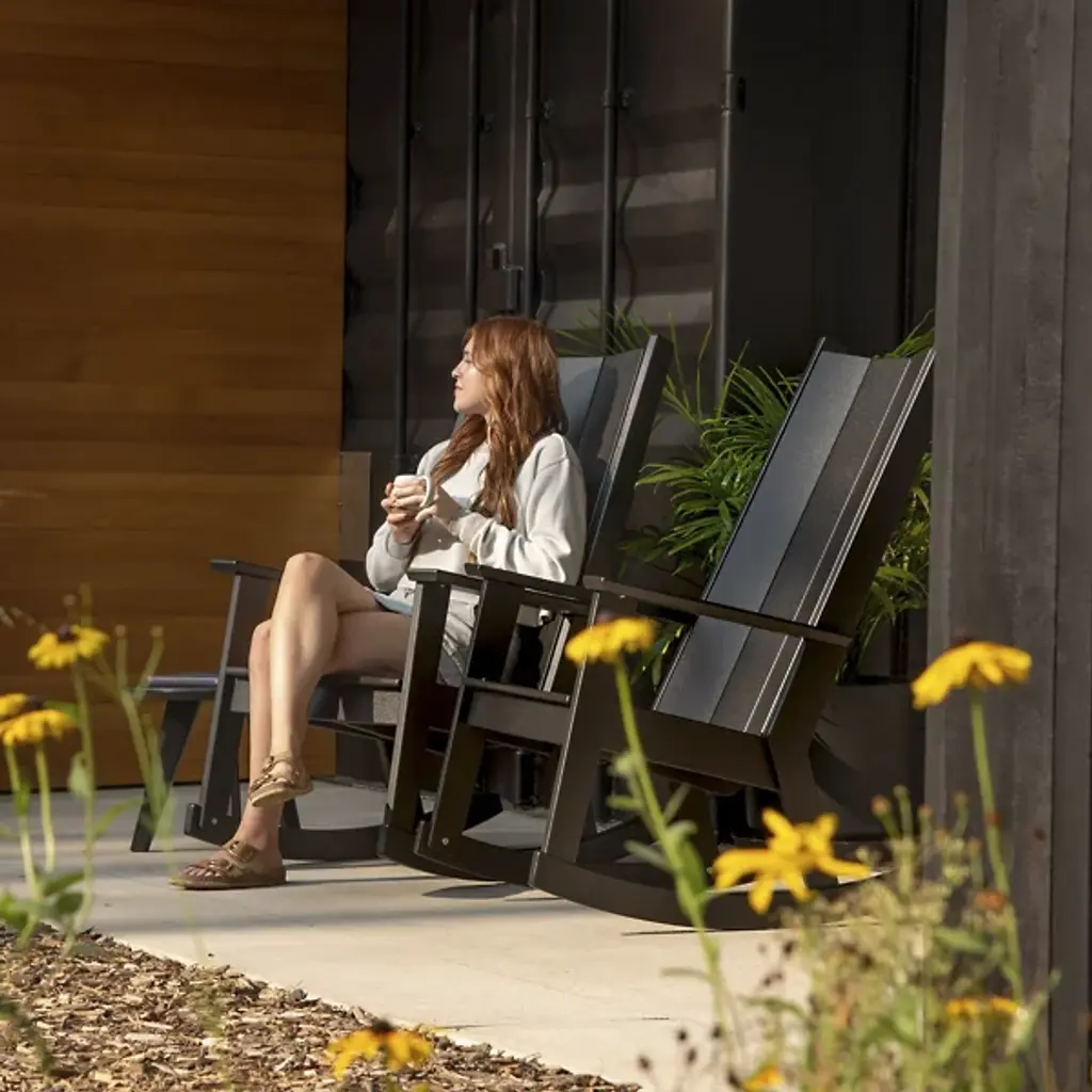 The Fredricksonn Outdoor Rocking Chair from Loll Designs is a commanding, Contemporary update to vintage rocker design, pairing modern strength and sustainability with a theme that looks backwards in time. Inspired by the unique rocking chairs that inhabit the front porches of Carolina houses, each chair is made in the USA from partially recycled HDPE. The process mostly uses milk jugs due to their initial lack of pigment, contrasting curving glides with an angled back of parallel planks. The artificial material can easily endure outdoor conditions, adding relaxation and movement to porches and patios everywhere.