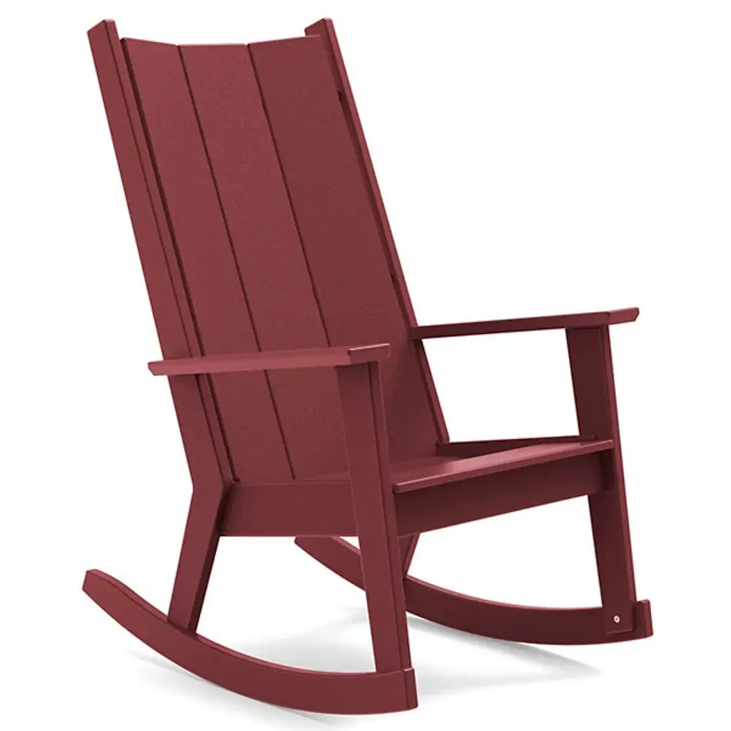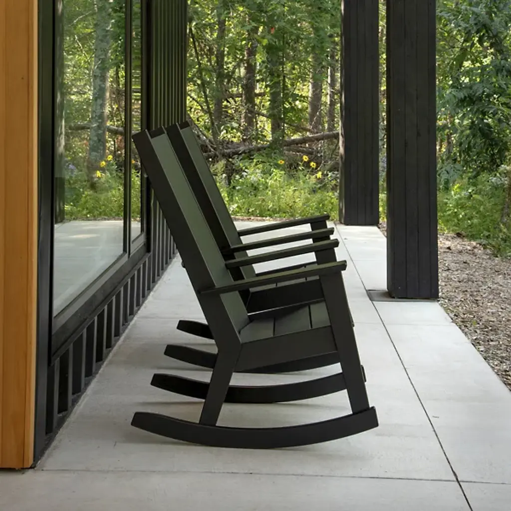 The Fredricksonn Outdoor Rocking Chair from Loll Designs is a commanding, Contemporary update to vintage rocker design, pairing modern strength and sustainability with a theme that looks backwards in time. Inspired by the unique rocking chairs that inhabit the front porches of Carolina houses, each chair is made in the USA from partially recycled HDPE. The process mostly uses milk jugs due to their initial lack of pigment, contrasting curving glides with an angled back of parallel planks. The artificial material can easily endure outdoor conditions, adding relaxation and movement to porches and patios everywhere.