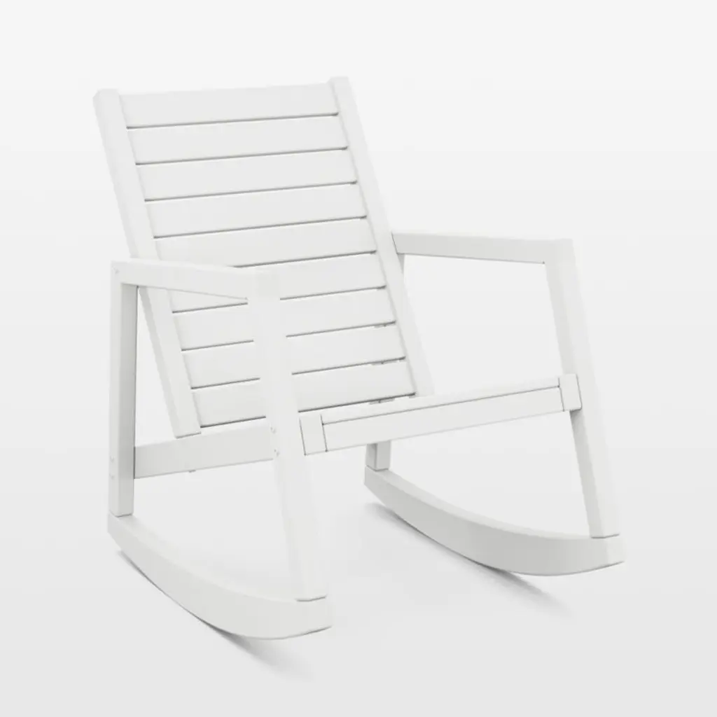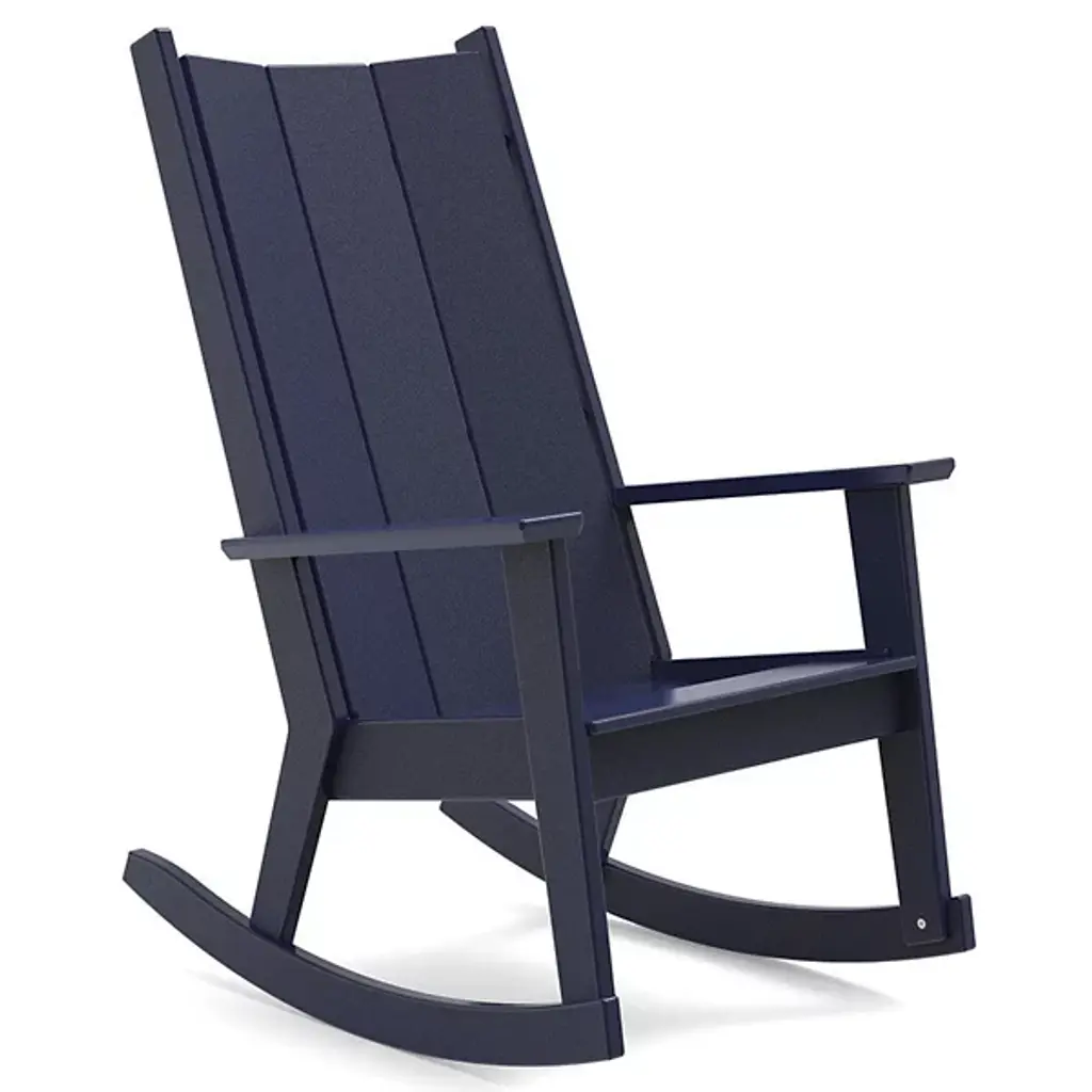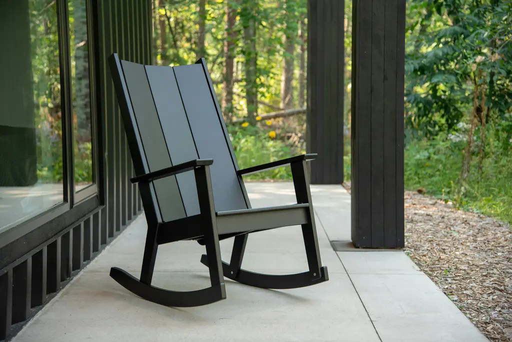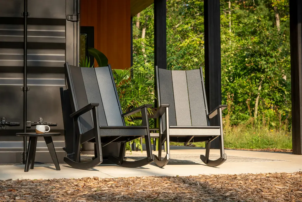Channeling the serene front porches of the coastal Carolinas, the Fredricksonn Rocker (2025) reimagines the classic Adirondack silhouette with a taller, more upright profile. Crafted from partially recycled HDPE and designed to withstand all seasons, this durable seat invites the timeless pleasure of gently rocking in the warm, open air. Made in the USA.