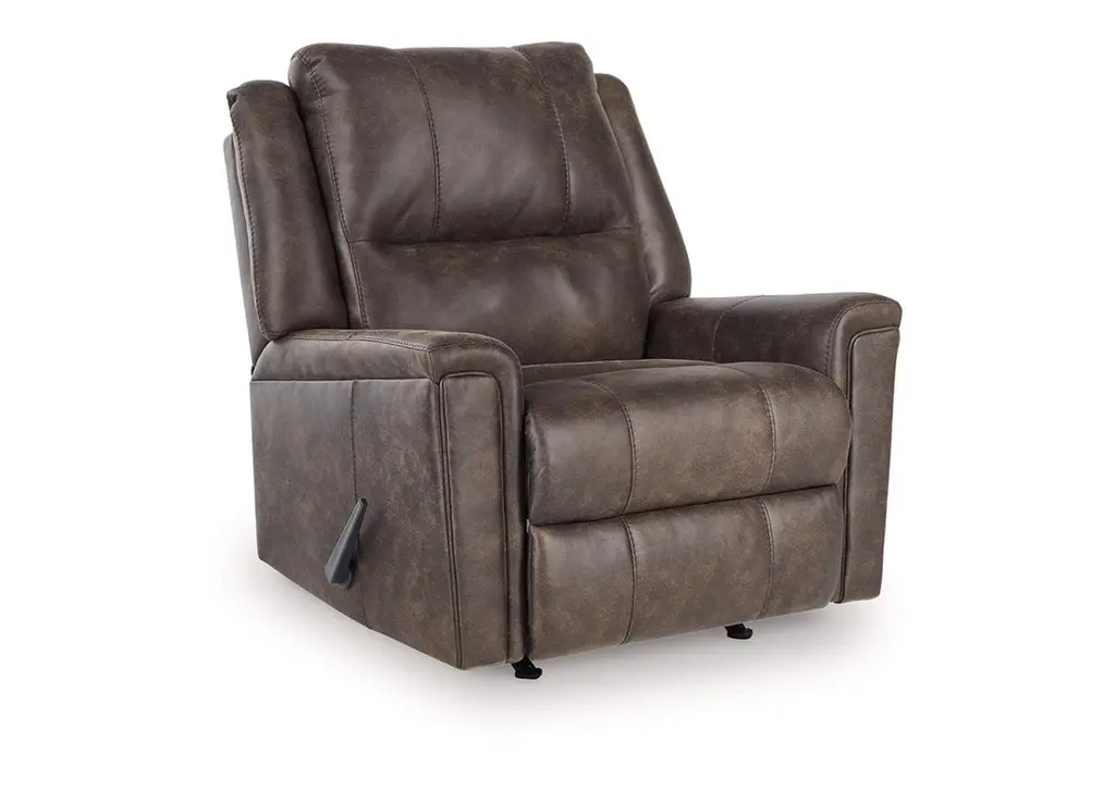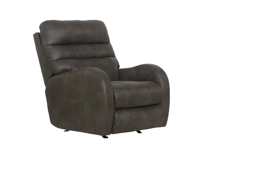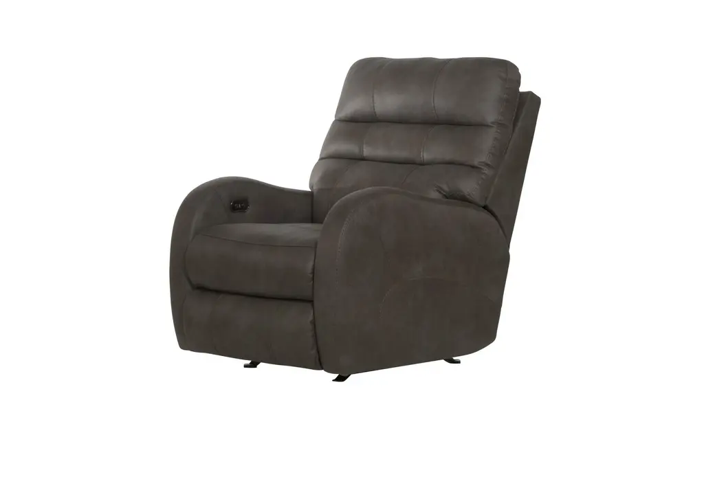 Gadson is a Power Rocker recliner with a triple pub back, stylish radius arm, and convenient power button with USB charging port. Choose rich Taupe or cool Steel grey faux leather fabric. Weight 95.000 lbs. (42.75kgs.)