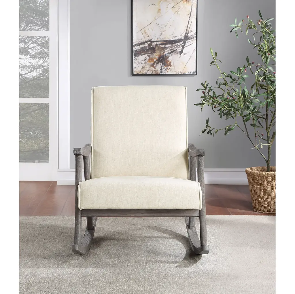 Gainsborough Rocker, Linen Fabric With Brushed Gray Finish Frame
