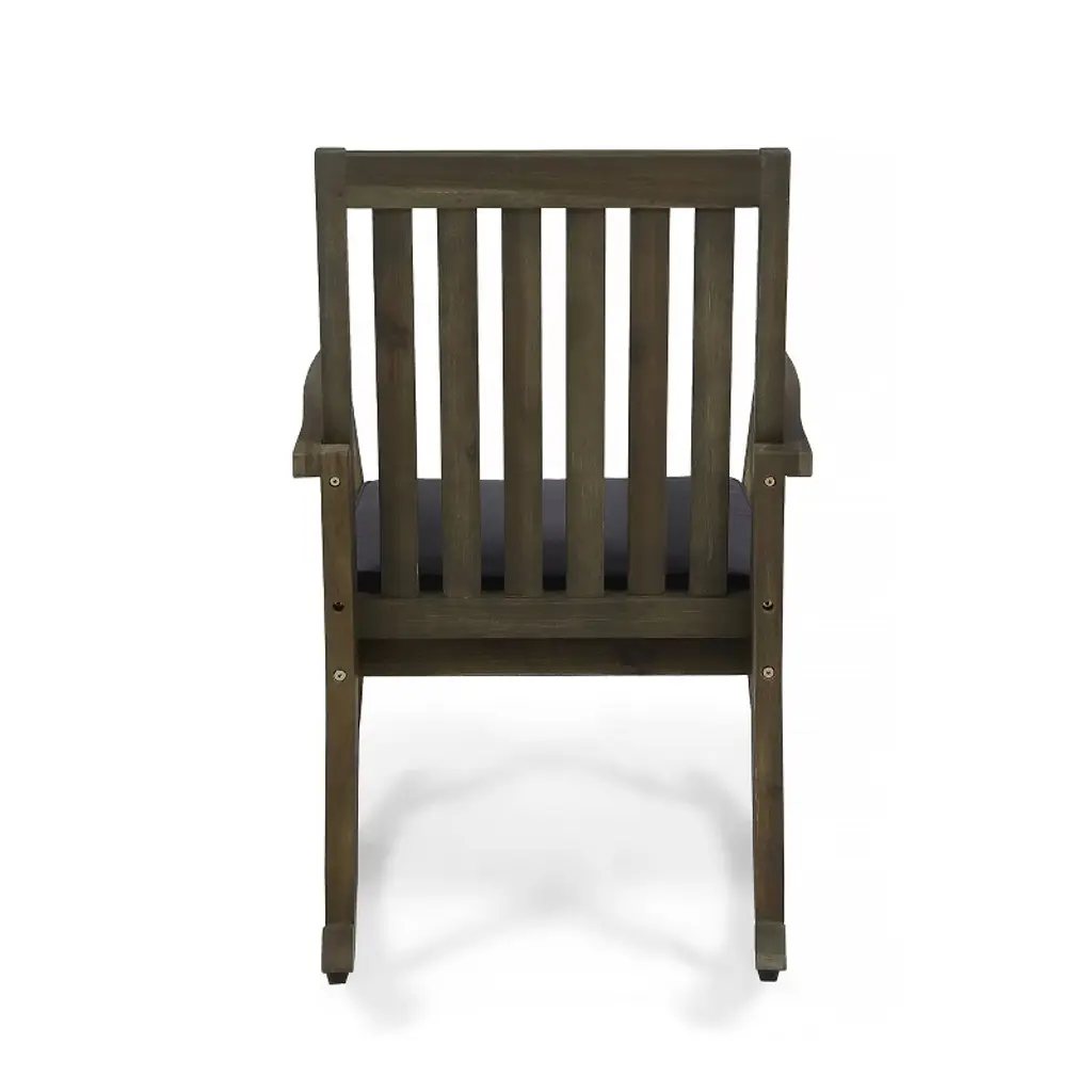 Unwind in style with this outdoor acacia wood rocking chair, designed for lasting comfort and durability. Crafted from solid acacia wood, its sturdy frame pairs beautifully with a removable, water-resistant cushion in a sleek dark gray tone. The spacious seat, supportive armrests, and smooth rocking motion create the ideal place to relax, whether on your porch, patio, or garden. With multiple frame finish options, it complements a wide range of outdoor décor styles. Easy to assemble and maintain, this rocker is perfect for enjoying peaceful moments and fresh air all year long. Frame Material: Acacia Wood Cushion Material: Water Resistant Fabric Fabric Composition: 100% Polyester Multiple Frame Finish Options Cushion Color: Dark Gray Some Assembly Required Product Dimensions: 36.50 inches deep x 24.75 inches wide x 35.75 inches high Seat Dimensions: 20.50 inches deep x 20.00 inches wide x 17.25 inches high Arm Height: 30.00 inches high