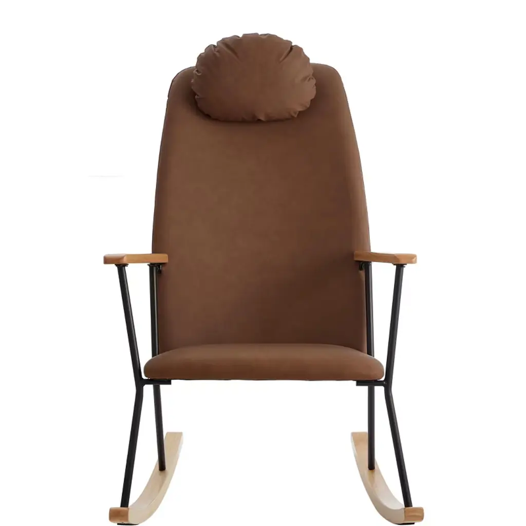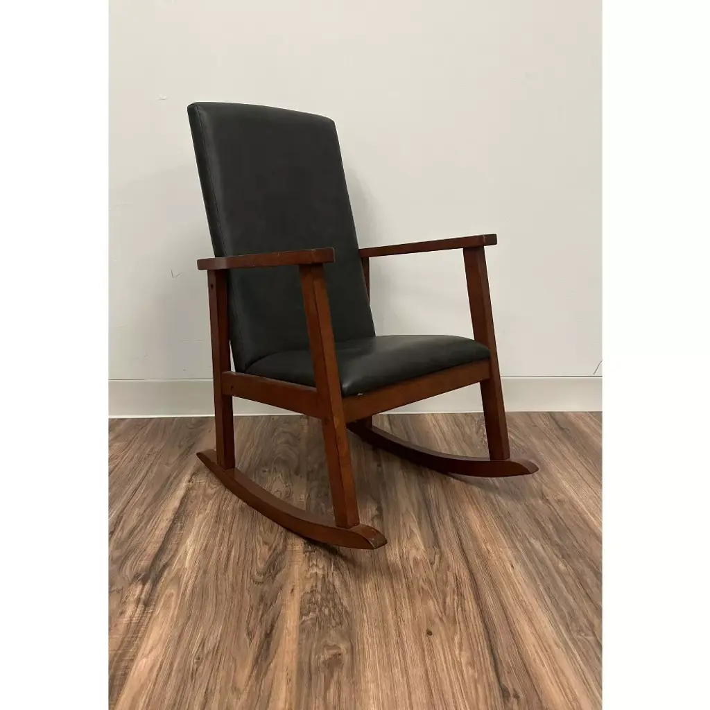 The Gift Mark Children's Fully Upholstered Rocking Chair in Cherry colored Wood , and brown leather like upholstery. This chair will make a great statement no matter where it is placed. Children will race to be the first to sit in this children's sized chair. This comfortable Rocking Chair, rocks smoothly, and is a wonderful choice to fill out your décor. Made using Rubberwood, this sturdy chair arrives with tools needed for assembly.