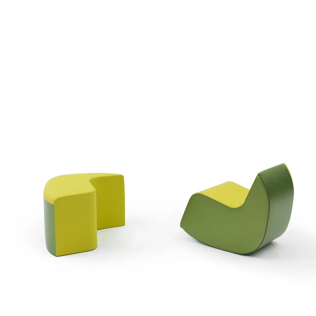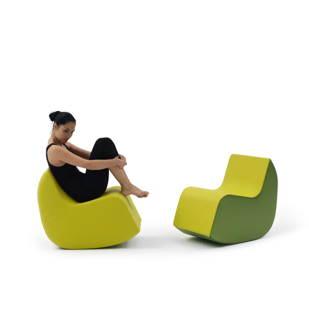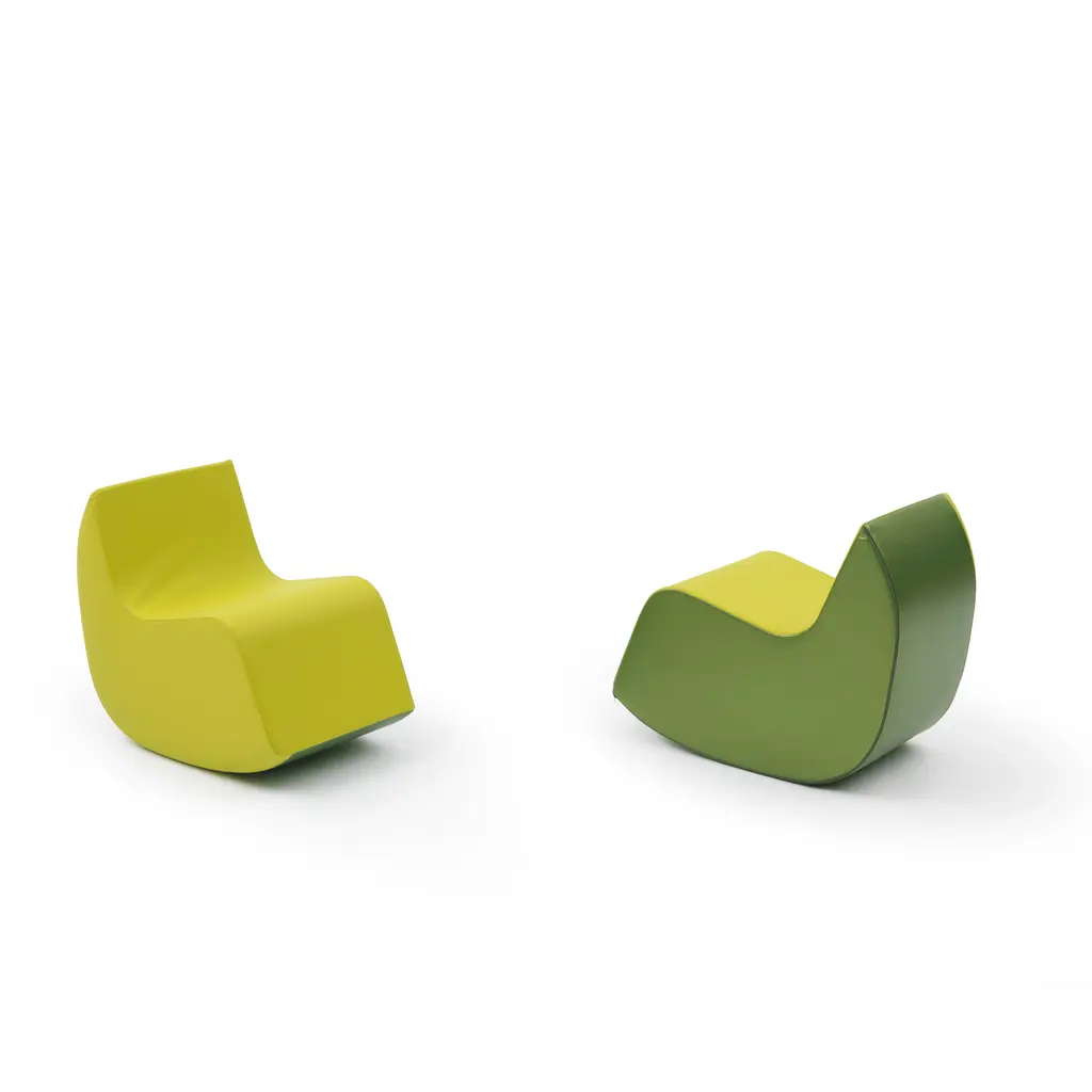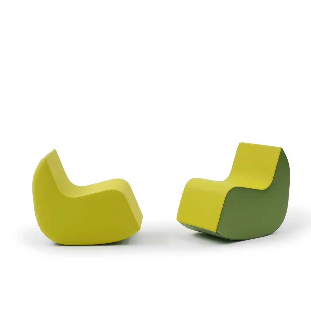 Two identical forms, open to interpretation. Gilbert & George is a modular piece made of two symmetrical poufs that can be arranged as an ottoman, split into a pair of rocking chairs, or used as a lounge chair with footrest. Designed by Denis Santachiara in 2015, the piece plays with balance—both physical and conceptual. It’s animated, flexible, and quietly subversive in its simplicity. Each element is upholstered in polyurethane fabric, available in various color combinations that echo the playful logic of its form. Nothing is fixed. Everything is in motion—just like the artists it’s named after.