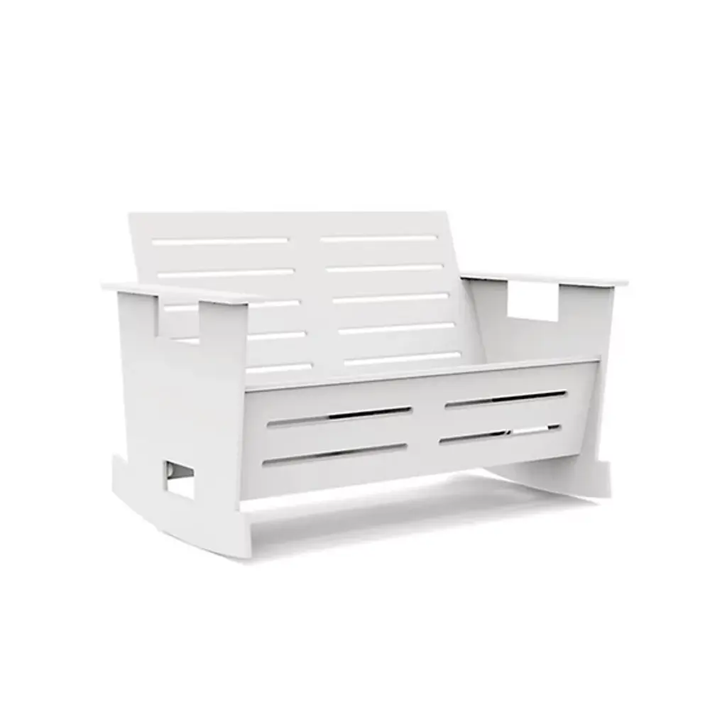 The GO Outdoor Loveseat Rocker by Loll is the definition of bliss. Combining a more upright design than usual with a taller seat height and rocking motion, this loveseat will become the most comfortable place to sit when enjoying fresh air and fun friends. It's durably built from recycled milk jugs and non-recycled HDPE and can be left on your porch or patio year-round and still maintain its sleek appearance. Update your outdoor seating arrangements with this weatherproof loveseat rocker.