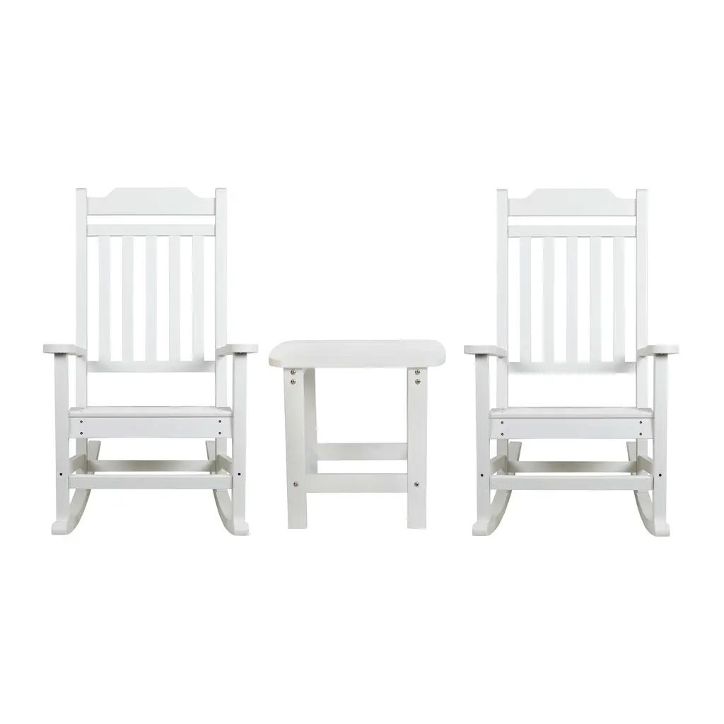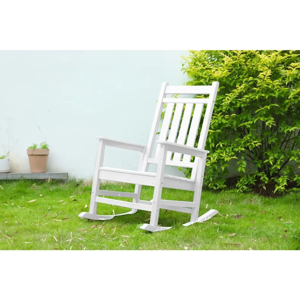 Gulches Outdoor Portable Chairs - Oversized White Rocking Chair With Wood-texture, All-weather Porch Rocker