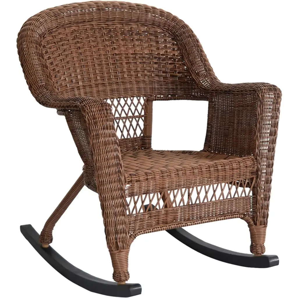 Homestock Rocker Medieval Majesty Chair With Green Cushion - Set Of 2, Honey Finish, All-weather Resin, Durable & Easy To Clean Design