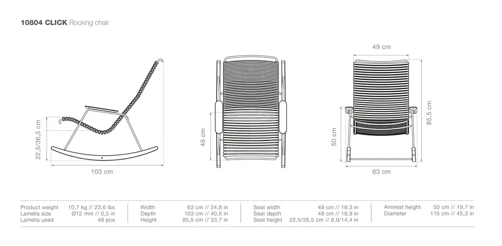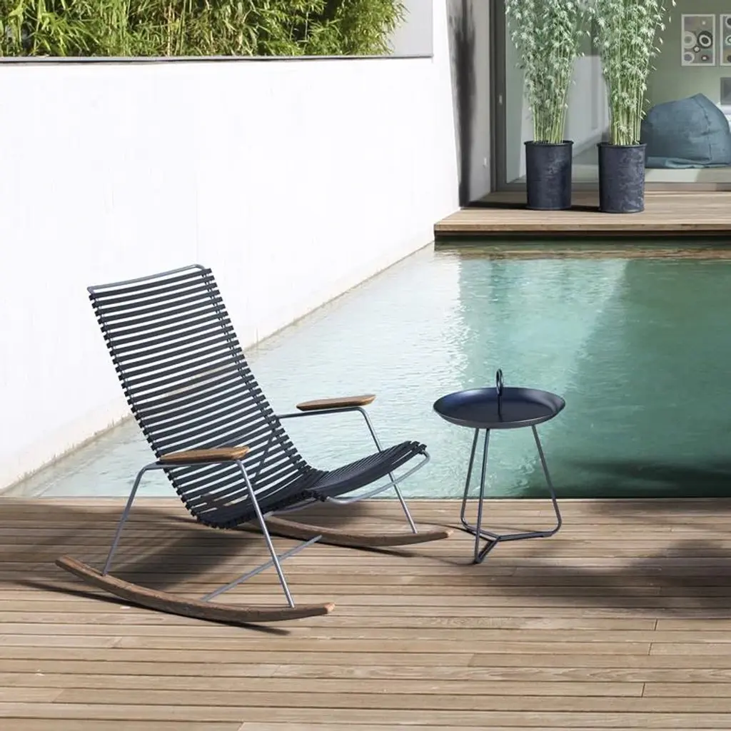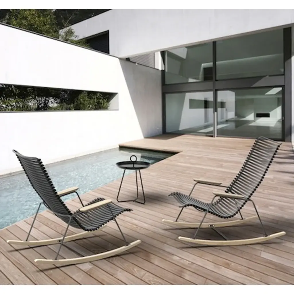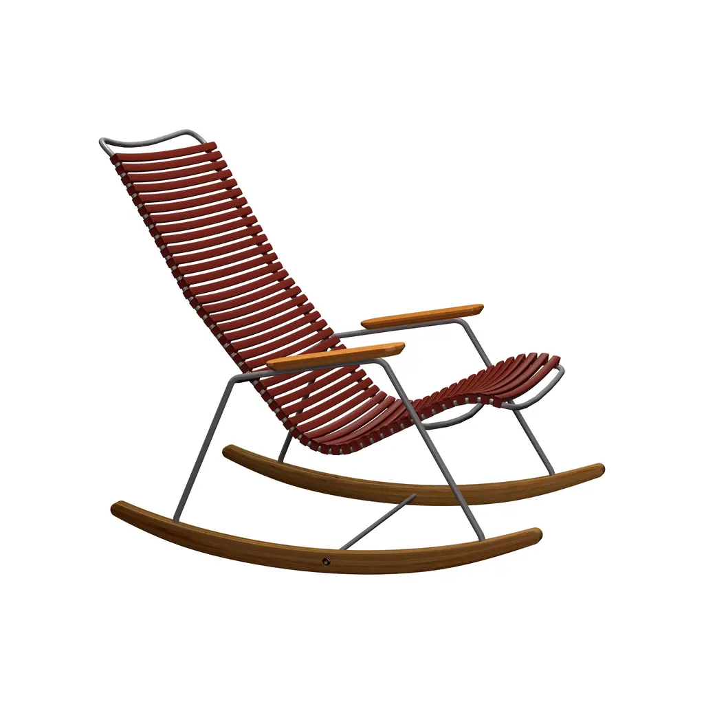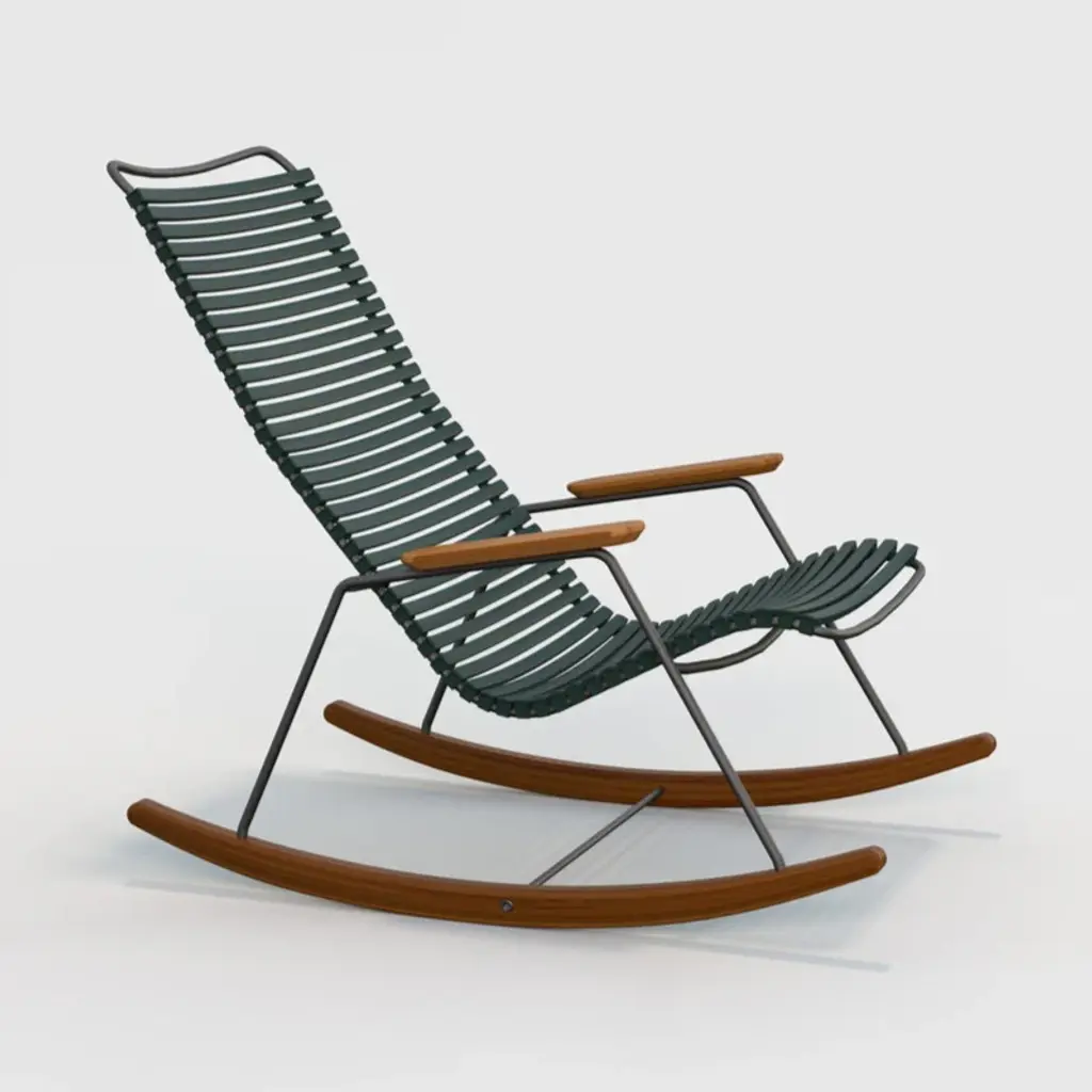 The CLICK Rocking Chair is the perfect addition to your outdoor living space. Constructed of plastic lamellas, it is airy and comfortable.
