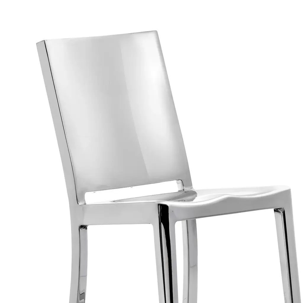 Hudson by Philippe Starck, 2000 A timeless piece, built for lifetimes of use, to be kept, cherished and passed on for generations. Made to order. Built by hand from 80% recycled aluminum in Hanover, Pennsylvania by our most skilled craftsmen. Guaranteed for life. The Hudson, designed for the Hudson hotel in NYC, is Emeco and Starck’s first collaboration. Starck described the chair as “washing the details from the Navy Chair”. Hudson is in MoMa’s permanent collection.