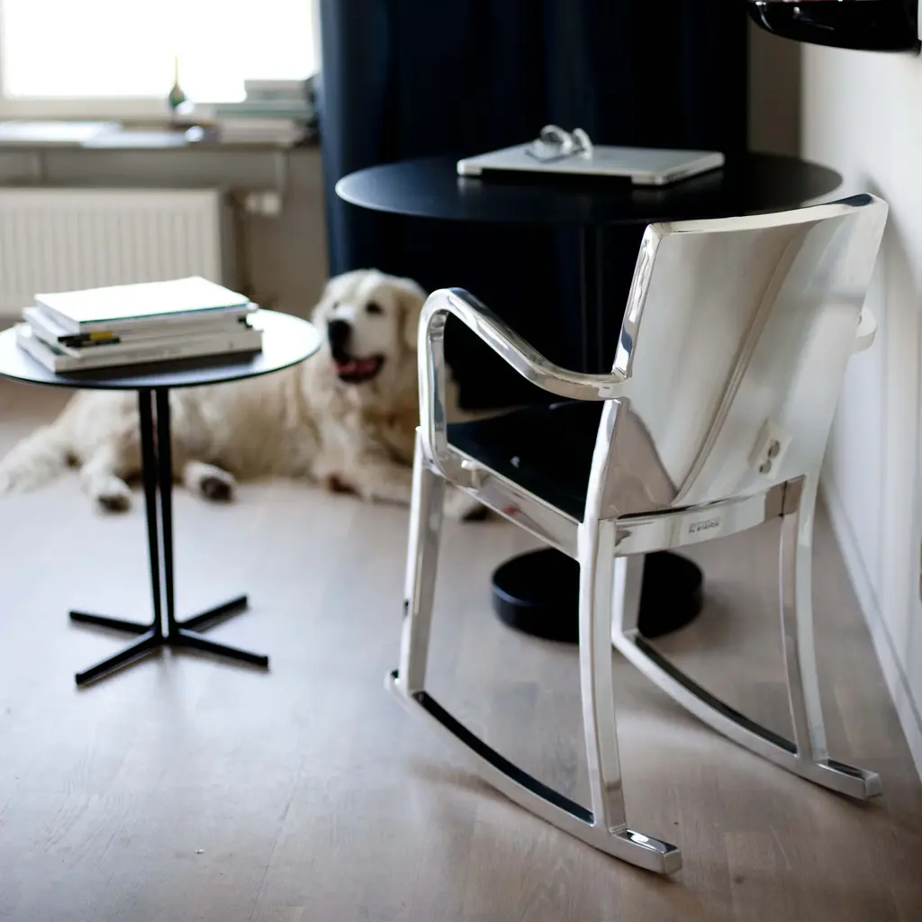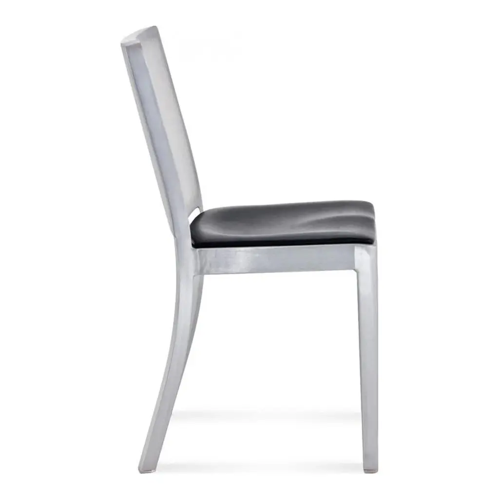 The Hudson, designed for the Hudson hotel in NYC, is Emeco and Starck’s first collaboration. Starck described the chair as "washing the details from the Navy Chair". It takes an additional 8 hours to polish each Hudson chair. Features