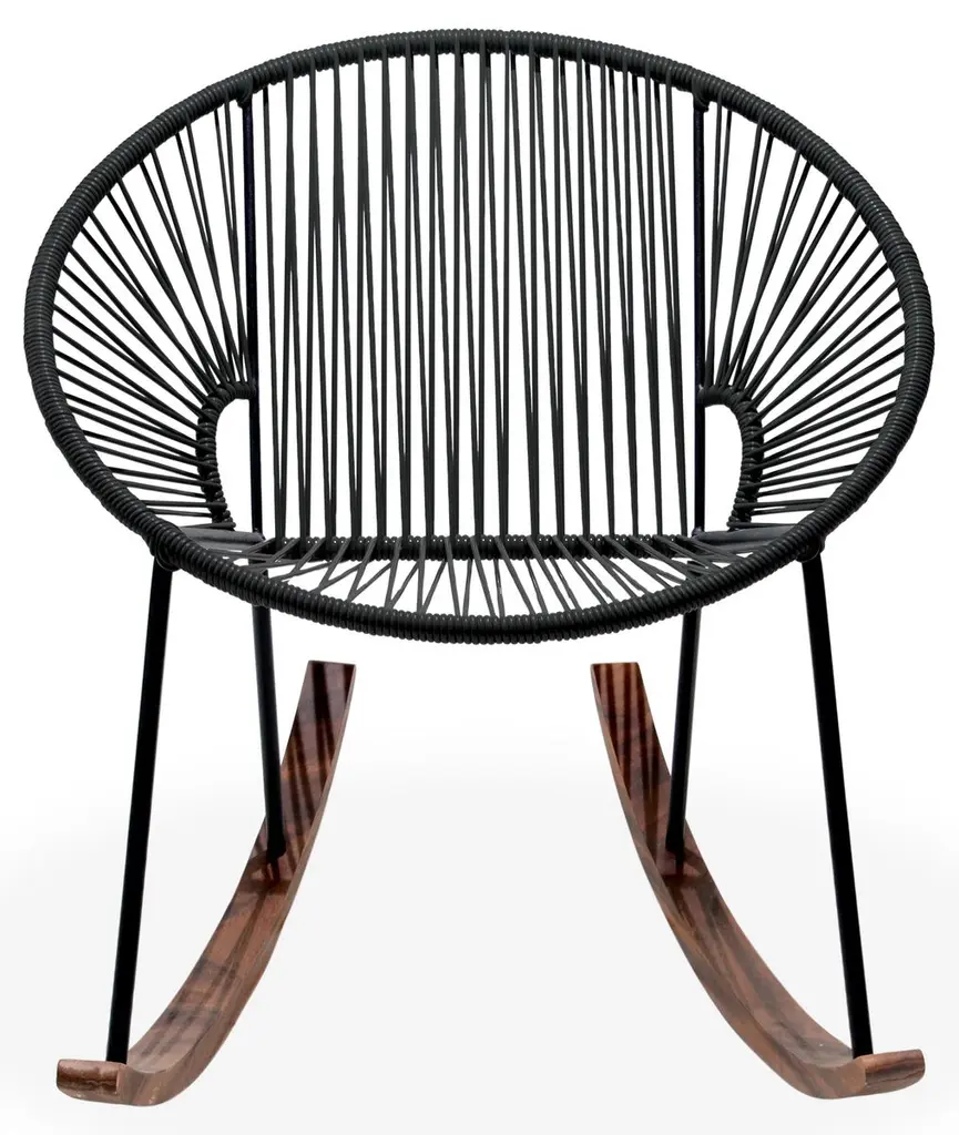 Carefully handcrafted by skilled artisans and certified welders in Mexico, this modern rocking chair is crafted of woven UV-protected PVC cord with a powder-coated steel frame and wooden legs. While it's designed for use on the porch or patio, a sleek silhouette and impressive durability also make it a great choice for an indoor sunroom or even a playroom.