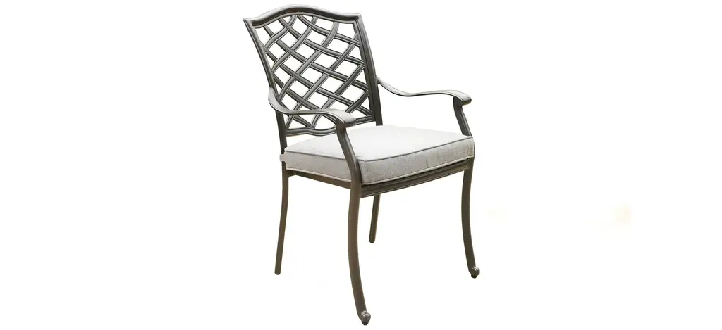 The Jasper Collection perfectly pairs eye-catching textural weave with bold angular aluminum frames for a transitional look that blends easily with any style. Reminiscent of vintage cane pieces reimagined for today, the open resin weave gets a modern mixed material update when paired with sleek aluminum frames and matching structural tables.FeaturesDimensions:Dining ChairThe Winston Difference Quality - Since 1975, our passion has been producing furniture that is ready to stand up to whatever Mother Nature dishes out. Resort quality materials combined with our expertise mean your furniture will be ready for you when it is time to get outside for years to come. Comfort - At Winston, we want you to want to spend more time outdoors, so every seating option is designed with your comfort in mind. Whether your style preferences lean toward products with cushions or our latest HDPE planked seating, every Winston chair offers generous proportions and thoughtful ergonomic design. Convenience - Whether convenience for you means quick shipping of in-stock products, shopping online in your pjs, or furniture so easy to care for you only need to hose it off once a year, Winston strives to provide options that satisfy your personal needs. Winston began manufacturing simple pieces made from aluminum and vinyl strap in 1975. As the popularity of casual outdoor furniture grew, Winston expanded capabilities and was the first company to introduce cushioned outdoor furniture made with all-weather fabrics. In 1982, Winston again led the pack by introducing sling furniture to a market that embraced the stylish and easy-to-maintain product line. Over the past few decades Winston has answered to the growing trend toward outdoor styles with an indoor feel, by developing ultra-comfortable furniture made with original details, customizable finishes, and resort grade materials. A commitment to service and design earned Winston coveted spots on specialty showroom floors as well as the Casual Furniture Manufacturer Leadership Award from the National Association of Casual Furniture Retailers (NACFR) four times since the award's inception in 1990. Today, Winston draws on a rich heritage in the outdoor furniture industry to continue innovating and designing furniture pieces that are casual, durable and elevated, with classic details and updated modern finishes.