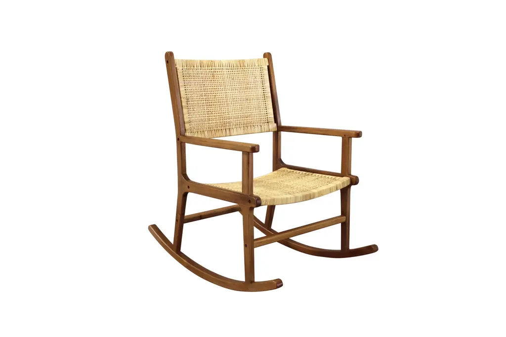 Relax into tradition with our Karson Rocking Chair, a timeless blend of comfort, craftsmanship, and calm. With a sleek mahogany wood frame and woven natural cane seat and back, this rocker offers classic style with a breezy, updated twist.The gentle arc of the rockers creates a smooth, soothing motion—perfect for porches, sunrooms, nurseries, or quiet corners indoors. Lightweight yet sturdy, it’s crafted to invite long afternoons with a good book or slow mornings with your favorite mug. Whether you’re adding character to your cottage retreat or creating a peaceful space to unwind, this rocking chair delivers rustic beauty and everyday comfort in one graceful silhouette.
