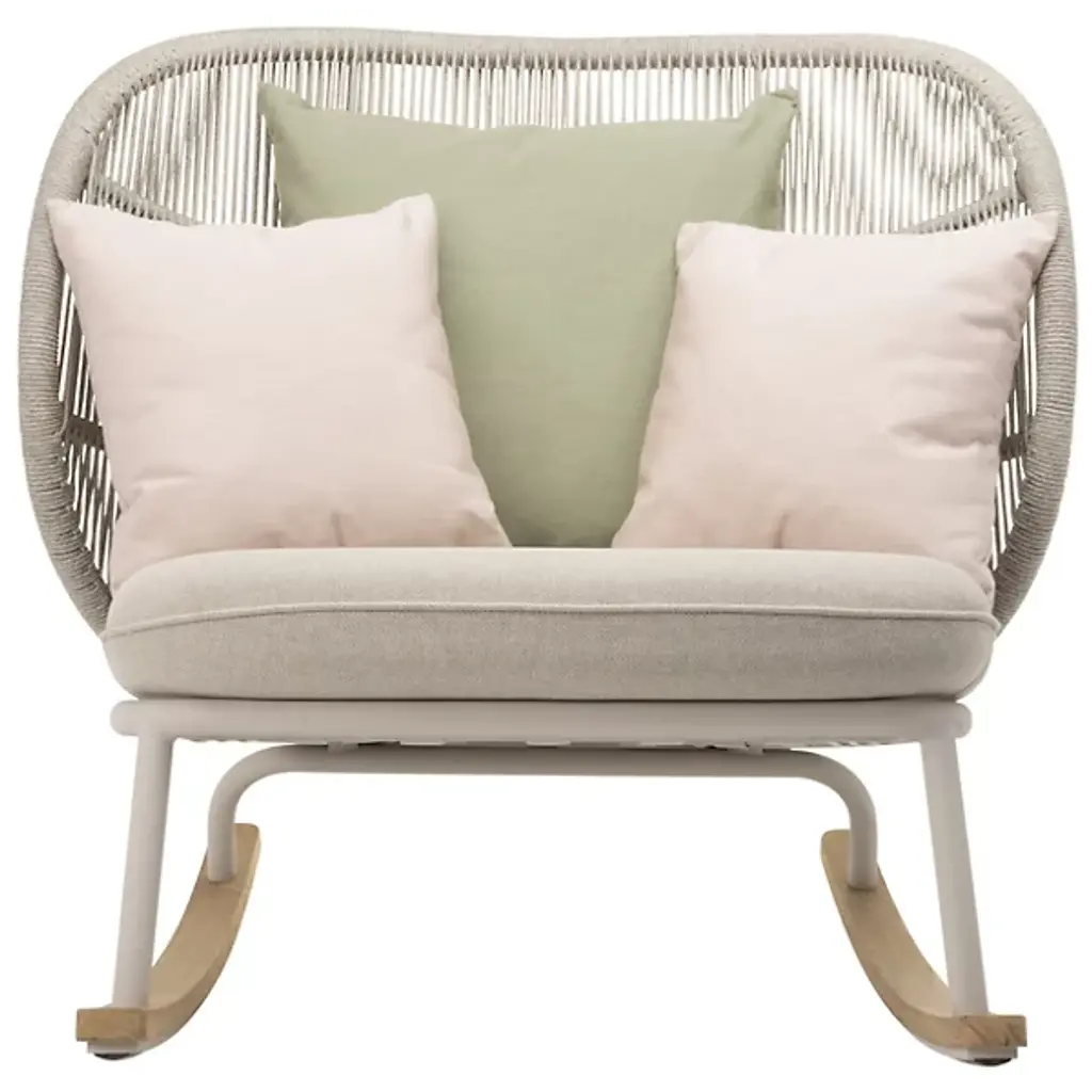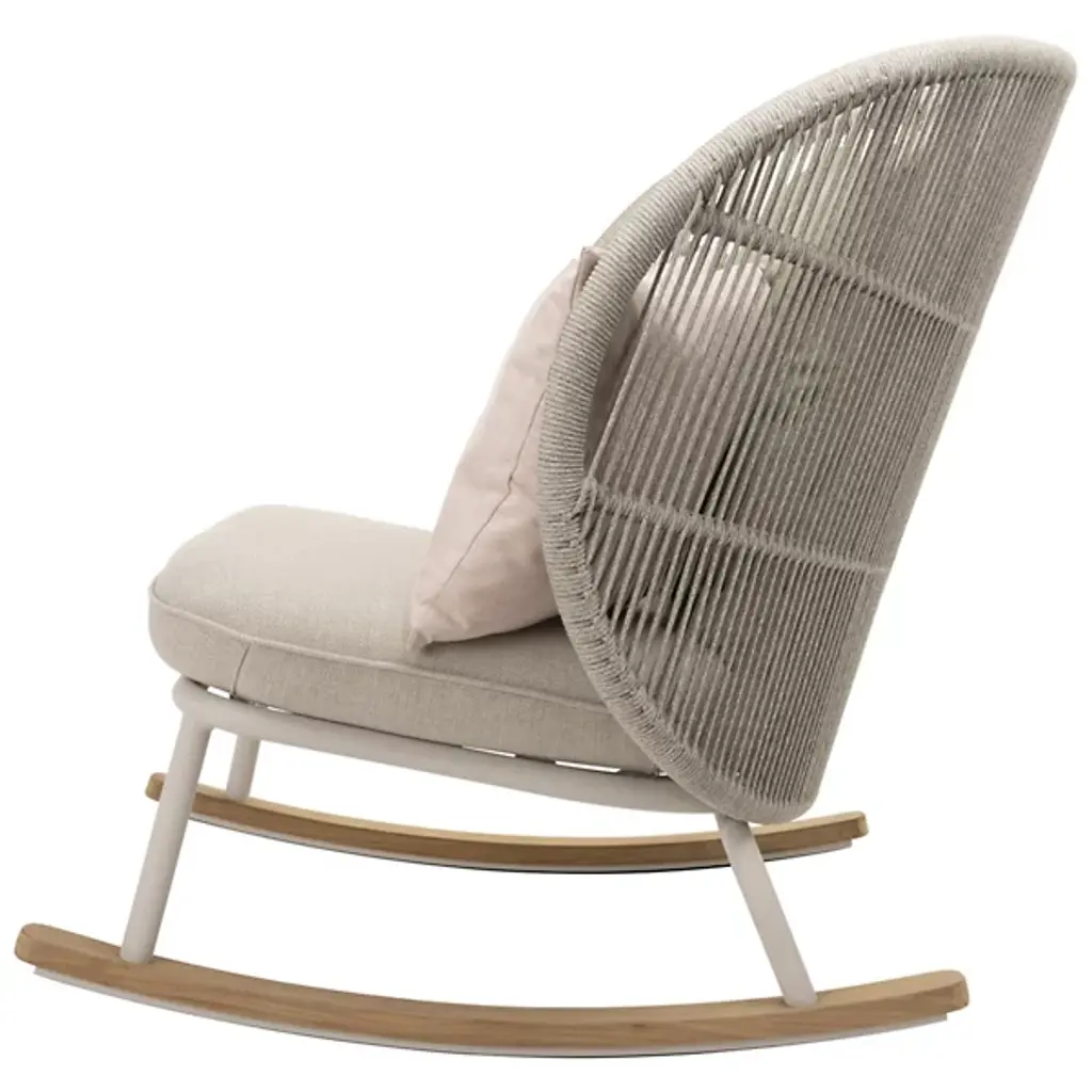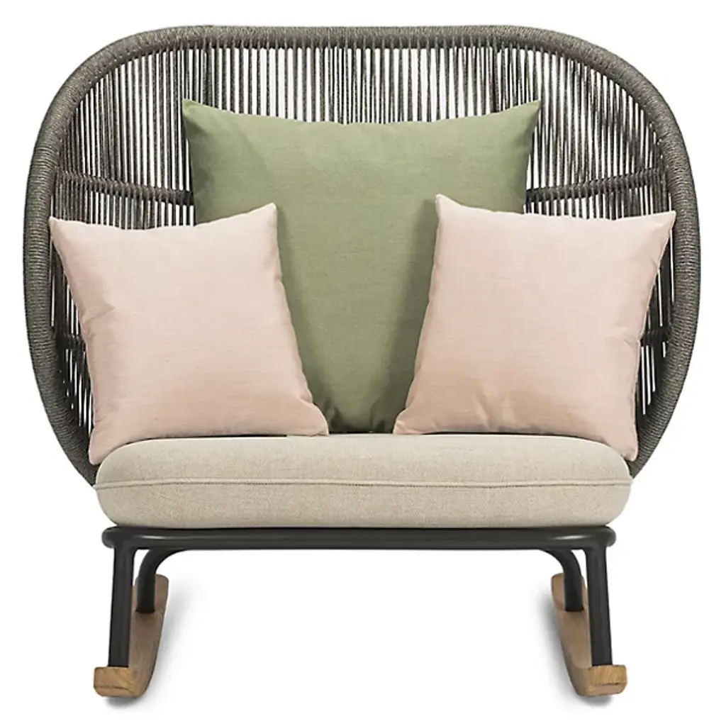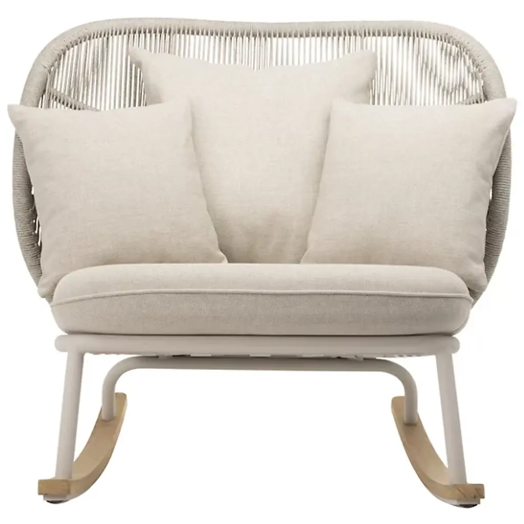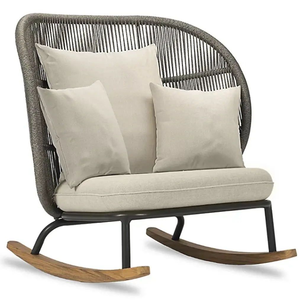 Enjoy lazy weekends and crisp autumn evenings on your front porch or back patio space with the Vincent Sheppard Kodo Outdoor Rocking Chair. This stylish outdoor rocking chair is built with a powder-coated aluminum frame and features solid teak rockers, ensuring a smooth back-and-forth rocking motion with every use. This outdoor rocking chair also includes Quick Dry foam with removable seat cushions, working together to keep your seat dry and comfortable. Adds a charming touch to your outdoor area.