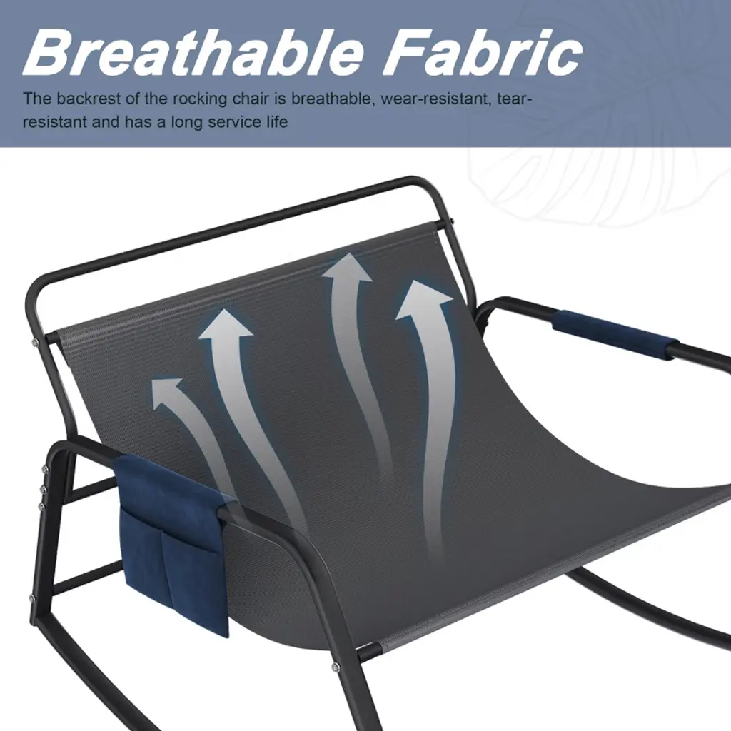 Ktmbdw Outdoor Rocking Chair, Modern Cozy Lounge Rocker Chair With Cushion And Storage & Armrests For Balcony Porch Patio, Blue