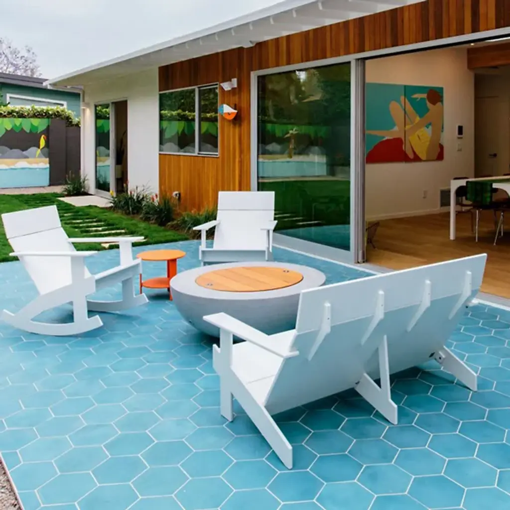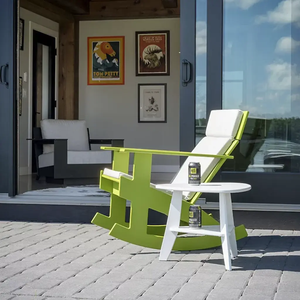 A cutting-edge and stylish modern piece that puts sustainability at the forefront, the Lollygagger Outdoor Rocker Chair from Loll Designs is made of recycled milk jugs and High-density Polyethylene (HDPE). The material of the jugs allows for a vibrant and varied array of colors, ensuring this piece stands out in your space. Comforting and unique, this chair creates conversation among friends and family while beautifully accenting the décor as you rock back and forth.